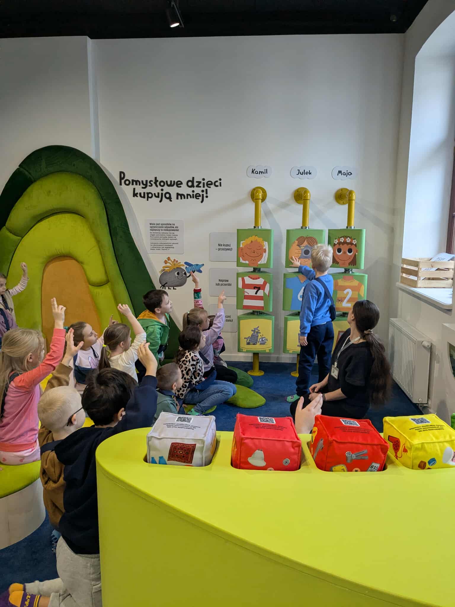 Wspólnie z edukatorką wybraliśmy się w podróż po interaktywnej wystawie. Po przywitaniu się z Ziemusiem zaczęliśmy wykonywać różne zadania- od sortowania śmieci poprzez mądre kupowanie. Największą radość sprawiło nam tworzenie energii i poszukiwanie wampirów energii. Za każde dobrze wykonane zadanie zdobywaliśmy kamienie mocy. Po wykonanych misjach każdy z nas otrzymał książeczkę z zadaniami ekologicznymi, a do klasy gry edukacyjne. Zajęcia były świetne i już czekamy na kolejne wyjście do Ekocentrum:)