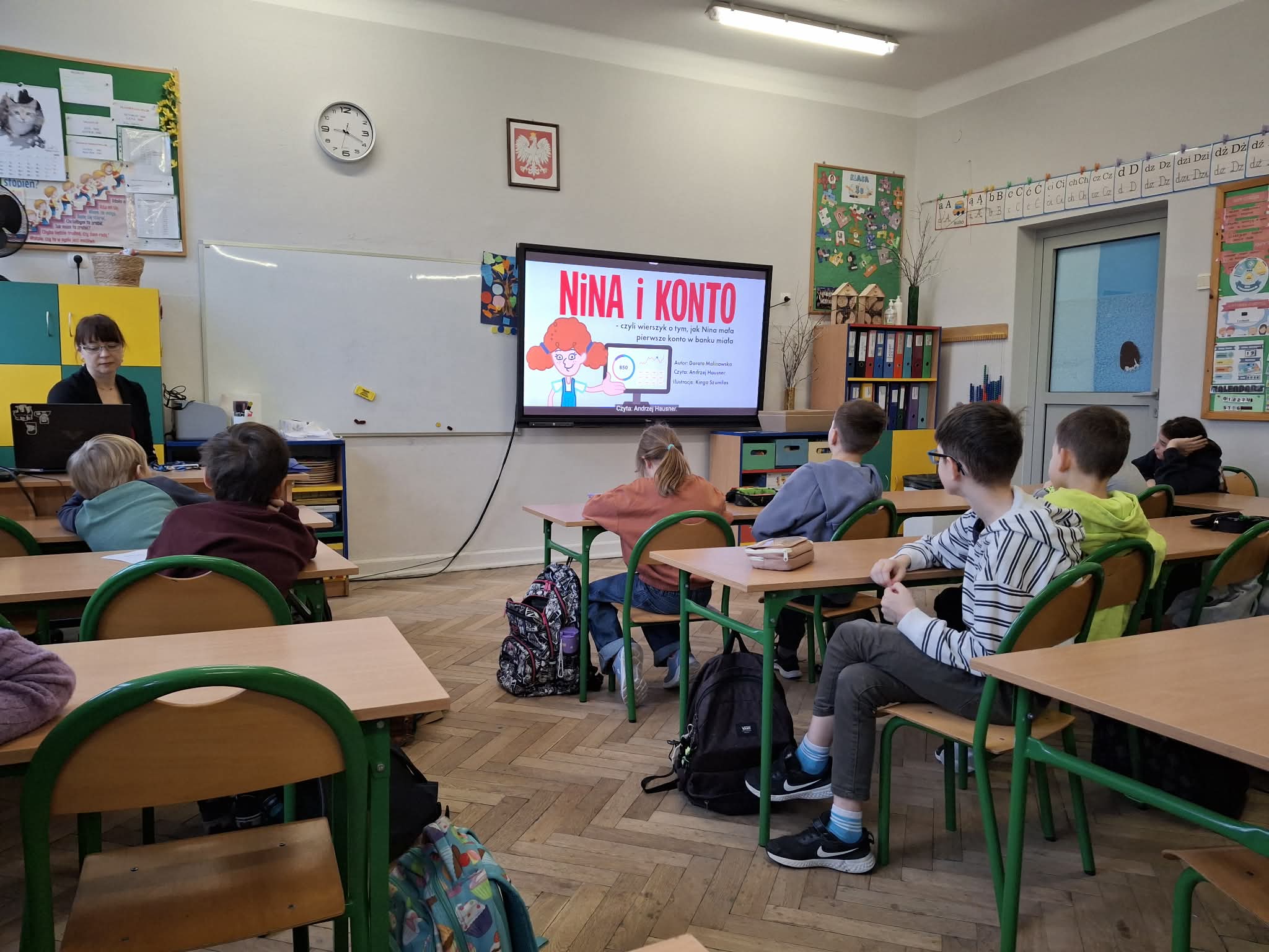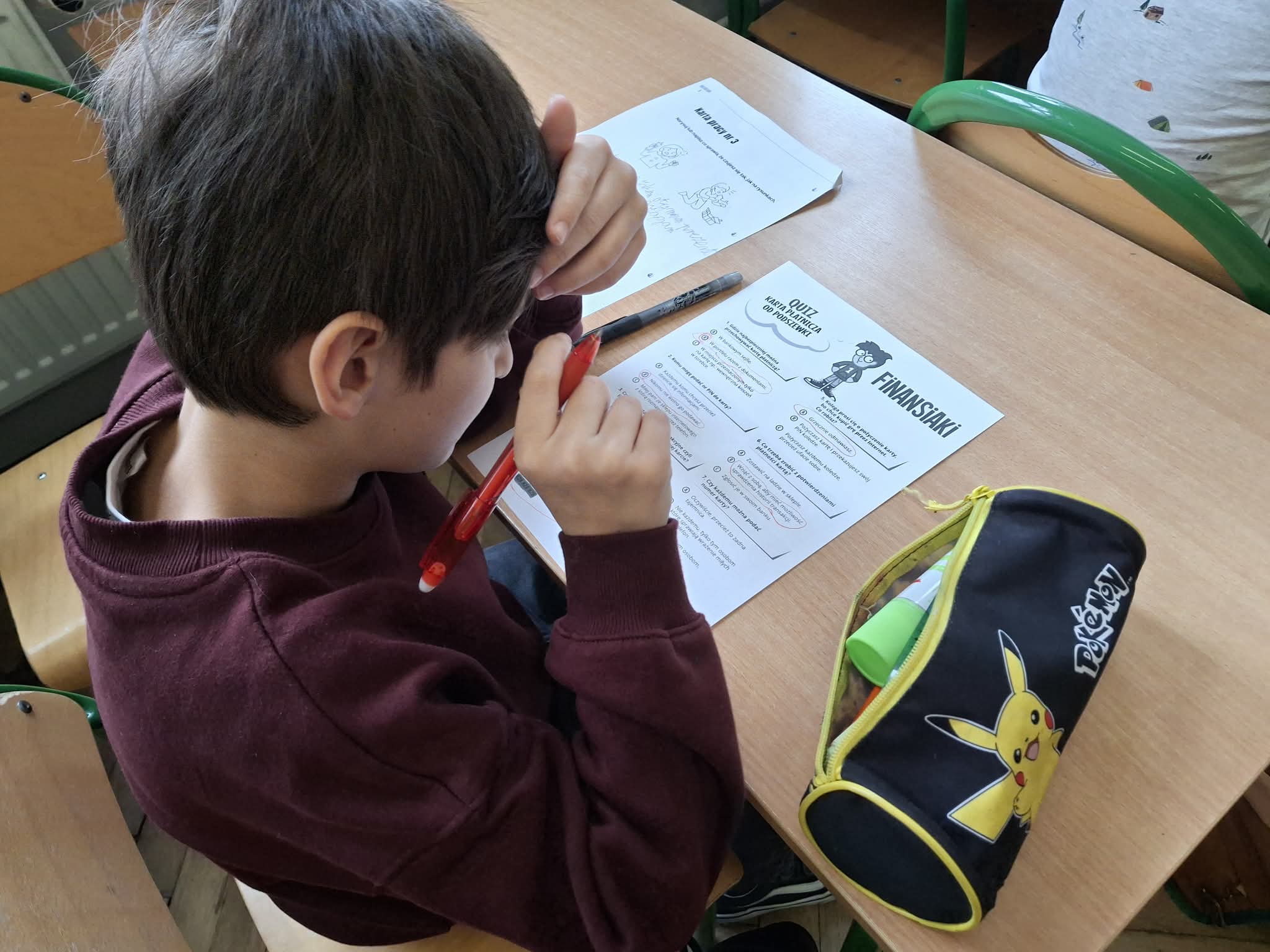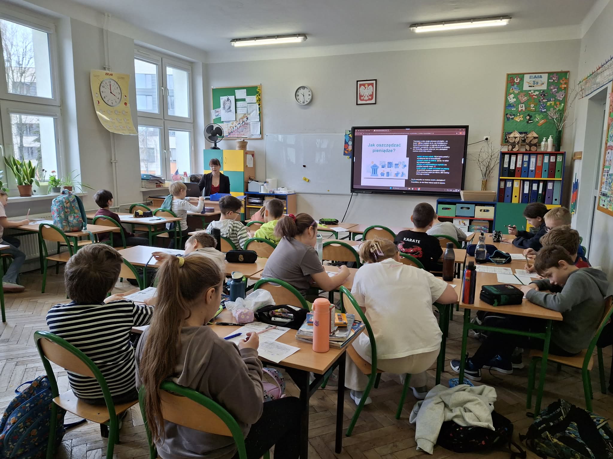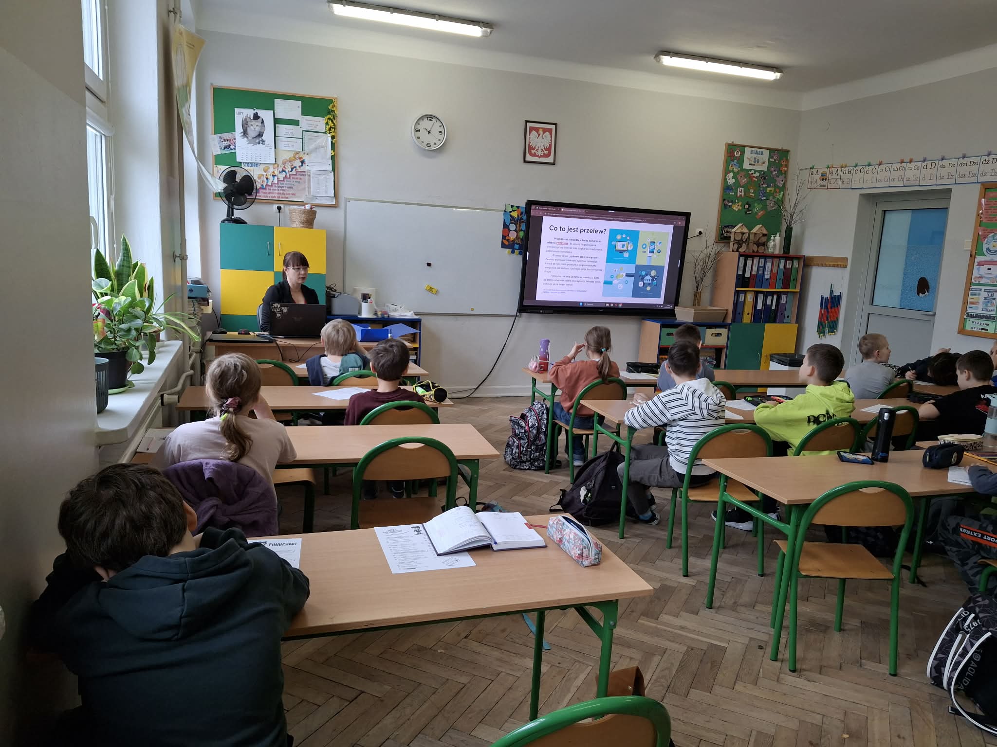 Nie zabrakło również aktywności angażujących uczniów – dzieci wypełniały druki do przelewów rozwiązały quiz podsumowujący wiedzę z zakresu finansów oraz poznały kilka patentów jak w prosty sposób oszczędzać, m.in. poprzez metodę trzech kopert.