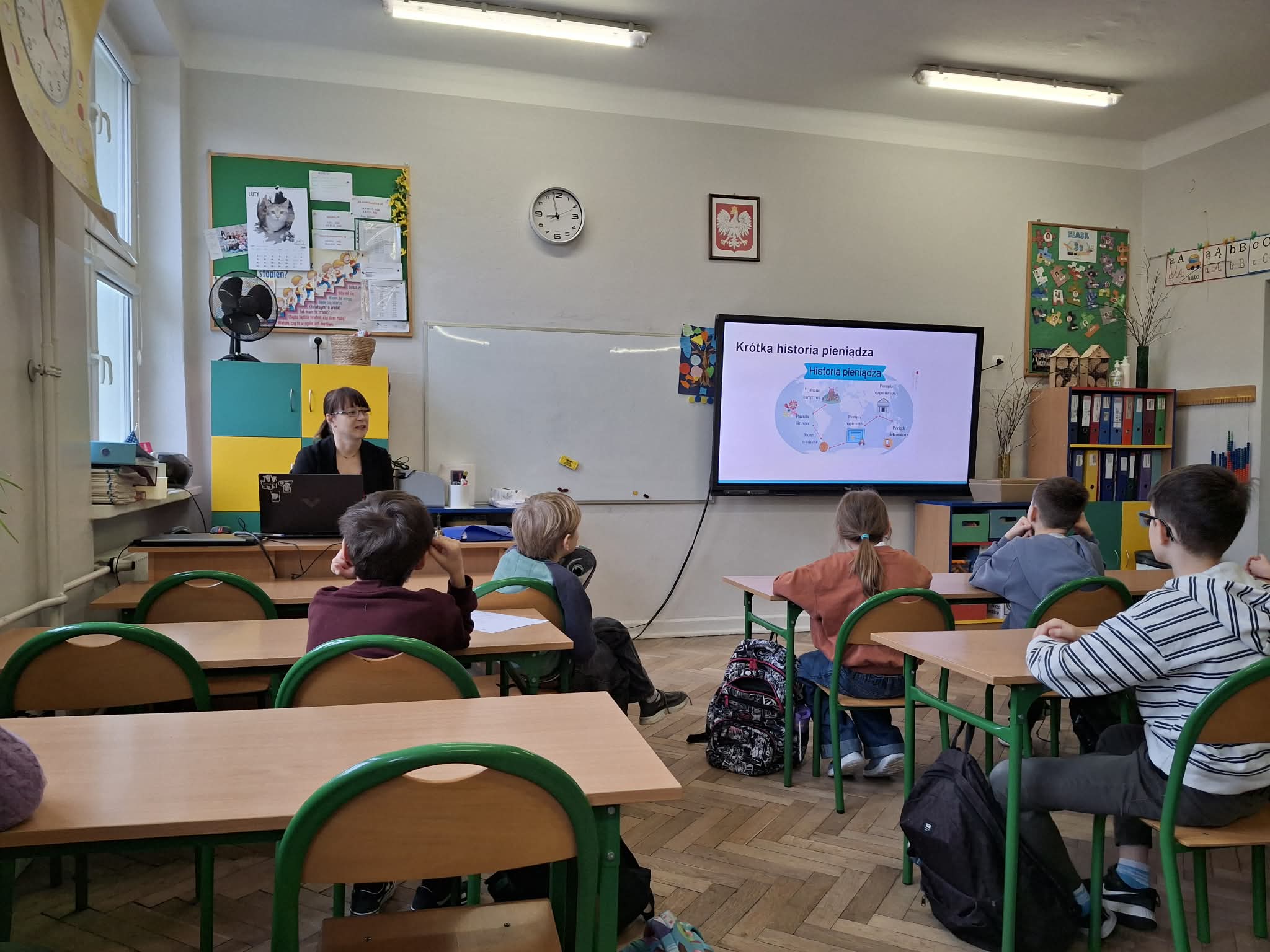 Podczas spotkania uczniowie dowiedzieli się, czym są pieniądze i jaką pełnią funkcję w codziennym życiu, jak oszczędzać oraz dlaczego warto planować swoje wydatki. P. Izabela w przystępny i ciekawy sposób wyjaśniła, na czym polega praca w banku, czym jest konto bankowe, karta płatnicza oraz jak bezpiecznie korzystać z bankowości elektronicznej.
