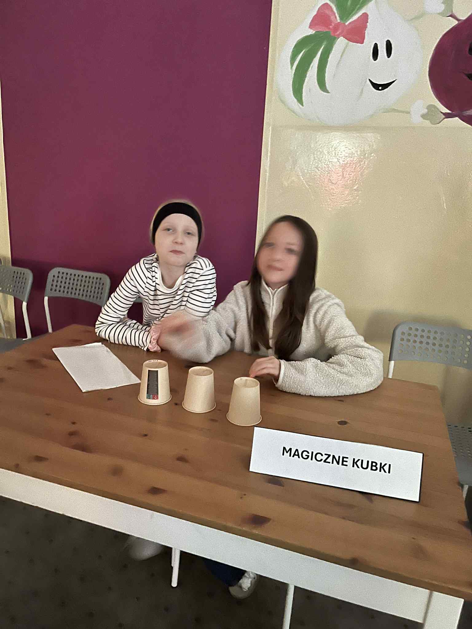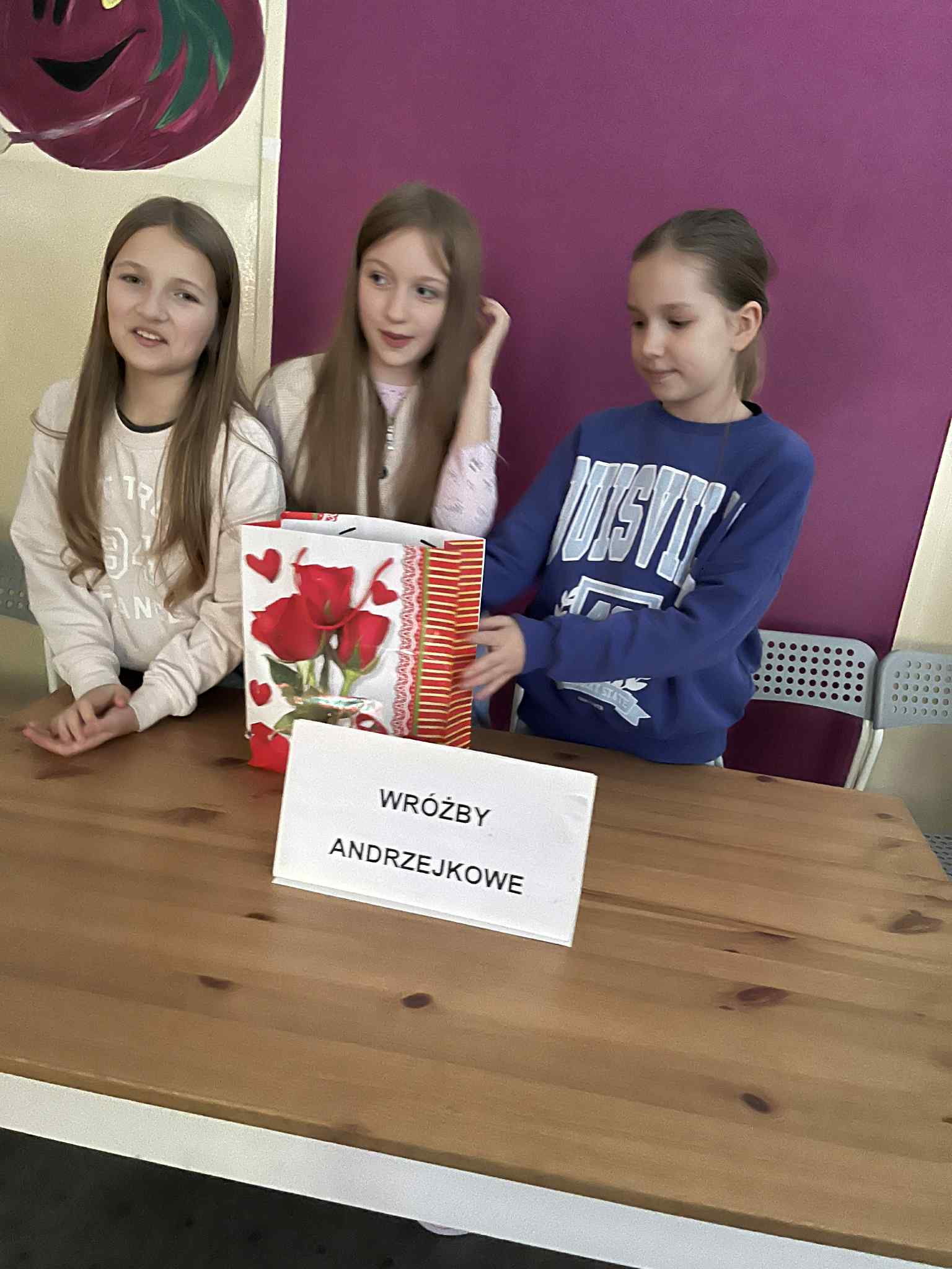 Przy jednym ze stolików znajdowała się wróżba „Kim będziesz w przyszłości?”. Dzieci losowały karteczki z torby, a prowadzące zabawę uczennice pomagały im odczytać wylosowany przyszły zawód. Wszyscy podchodzili do tego z uśmiechem i dużą ciekawością.
