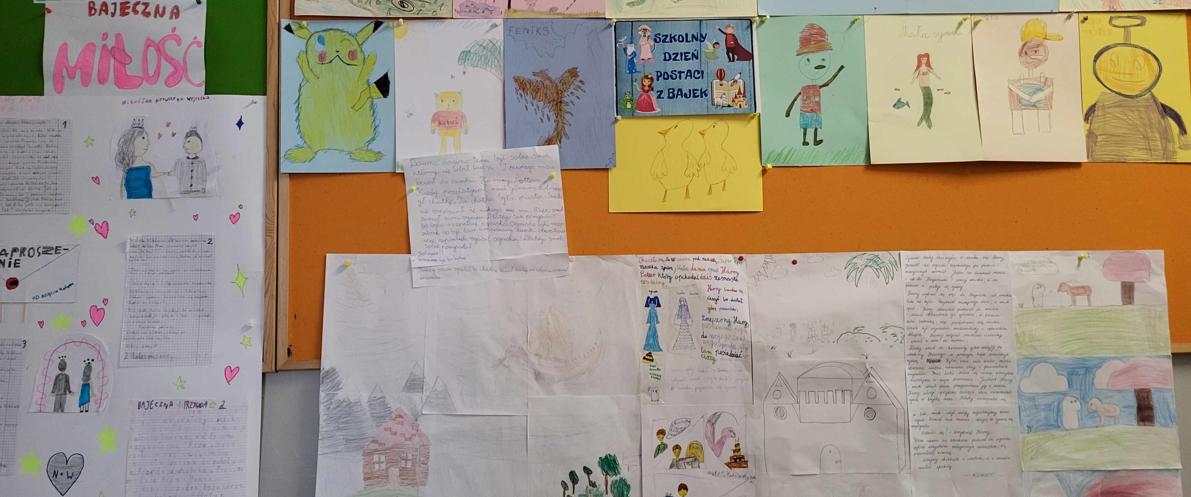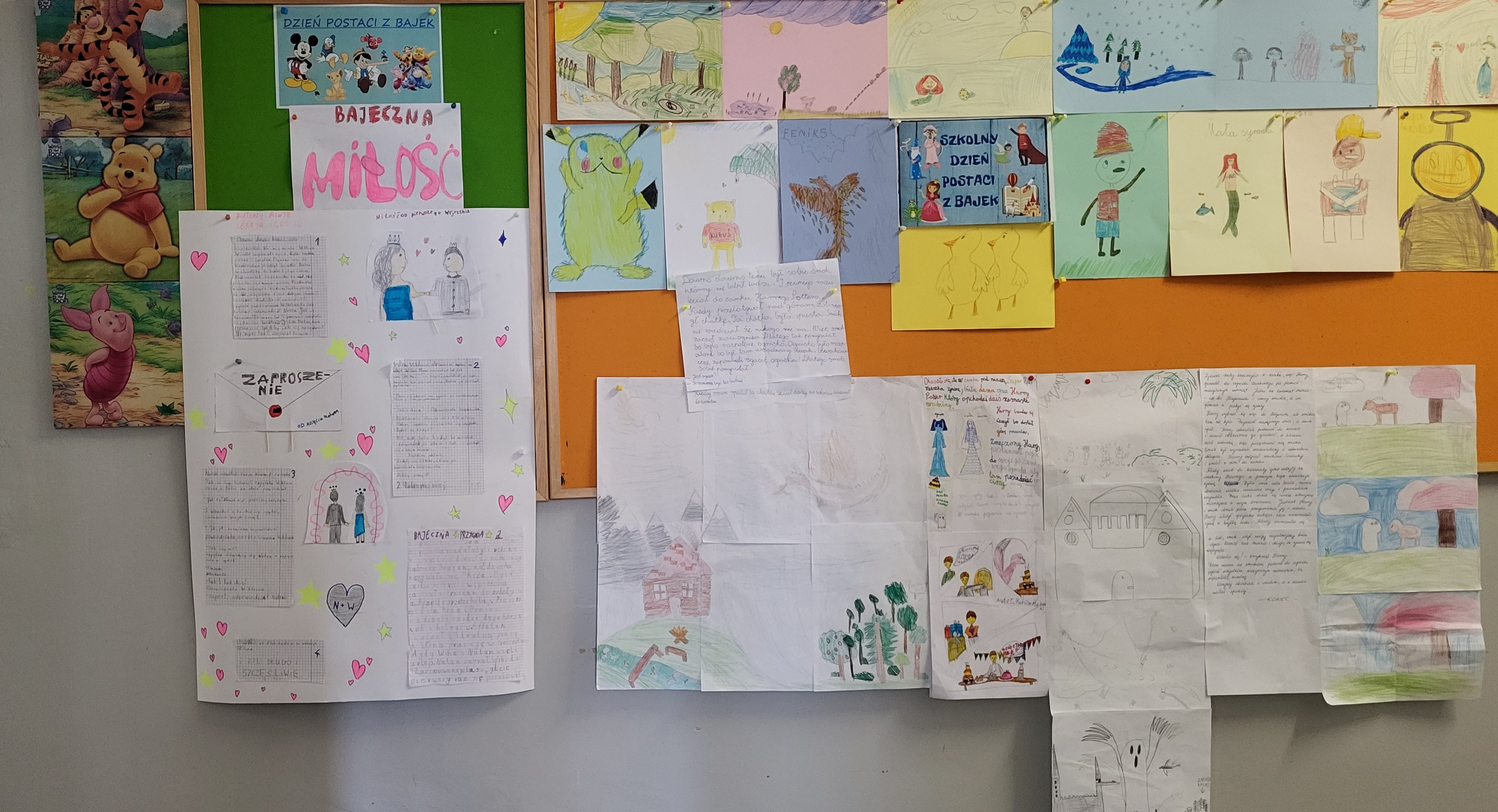 Prace zostały umieszczone na tablicach przy pracowniach klas I-III. Tworzą tam niepowtarzalny baśniowy klimat.