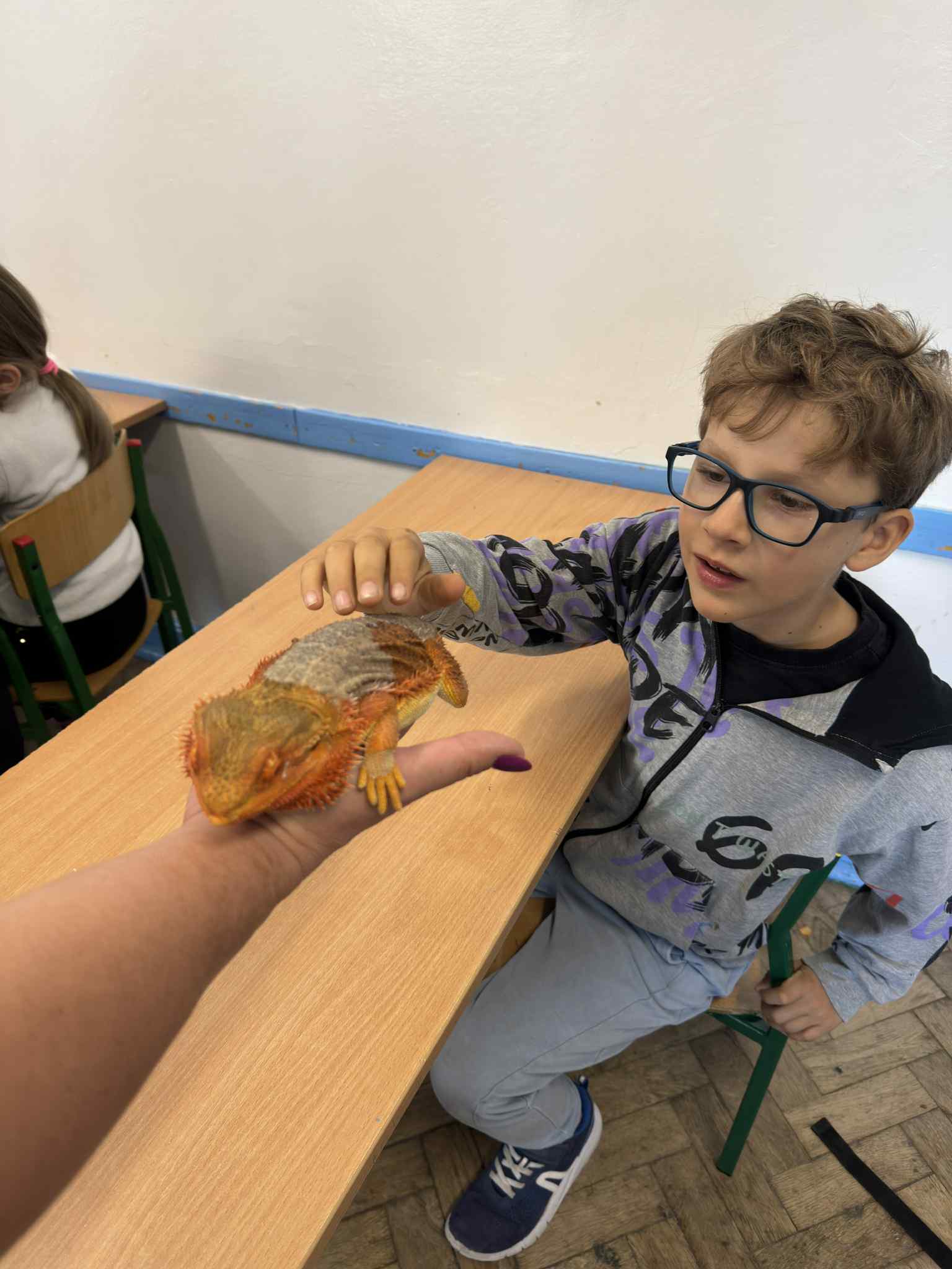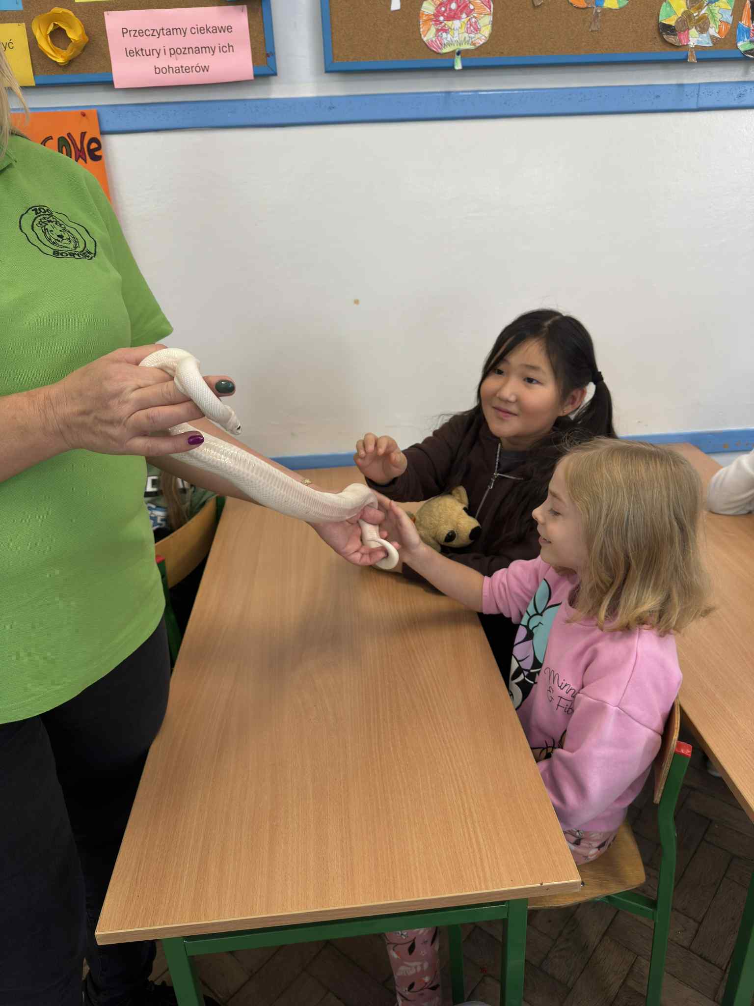 Byli to przedstawiciele gadów: pyton królewski i agama brodata, mięczaków – ślimak królewski oraz ssaków – największa atrakcja spotkania – szynszyle. Dzięki spotkaniu i bezpośredniej obserwacji, zadawaniu pytań opiekunom zwierząt oraz możliwości dotykania nietypowych gości, uczniowie zgłębili swoją wiedzę i zaspokajali ciekawość.