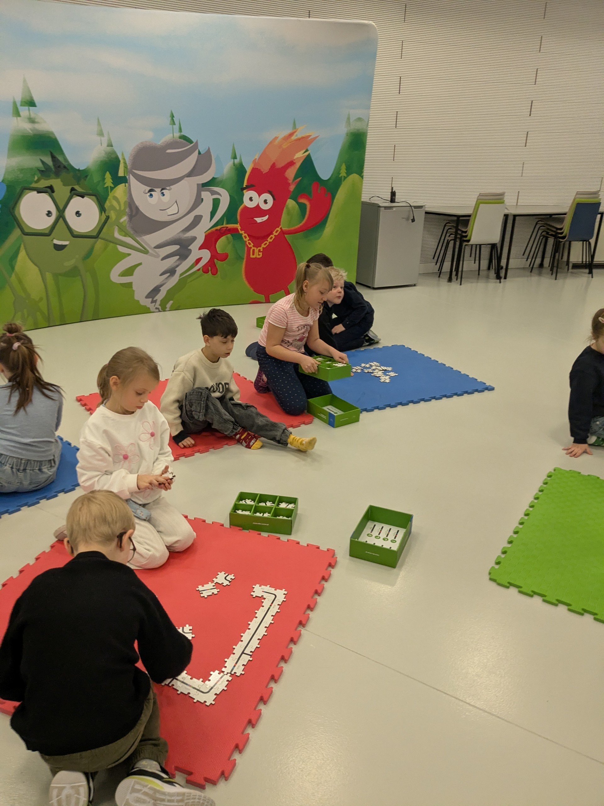Szyfry, łamigłówki, kody... to jest to co lubimy! Wraz z pracownikami zostaliśmy zabrani w fascynujący świat kodowania. Rozwiązywaliśmy tajemnicze hasła i zagadki. Poznaliśmy tajniki obsługi Ozobotów oraz wspólnie zbudowaliśmy dla nich z puzzli trasę na której urządziliśmy wyścigi. W parach zaprogramowaliśmy sny Ozobota i sprawdziliśmy czy robot nas rozumie. Zajęcia były fantastyczne ! Na zakończenie zajęć poszliśmy jeszcze zwiedzić Ulicę Żywiołów na której czekały na nas świetne zadania do wykonania i super tory przeszkód. To był dzień pełen wrażeń!