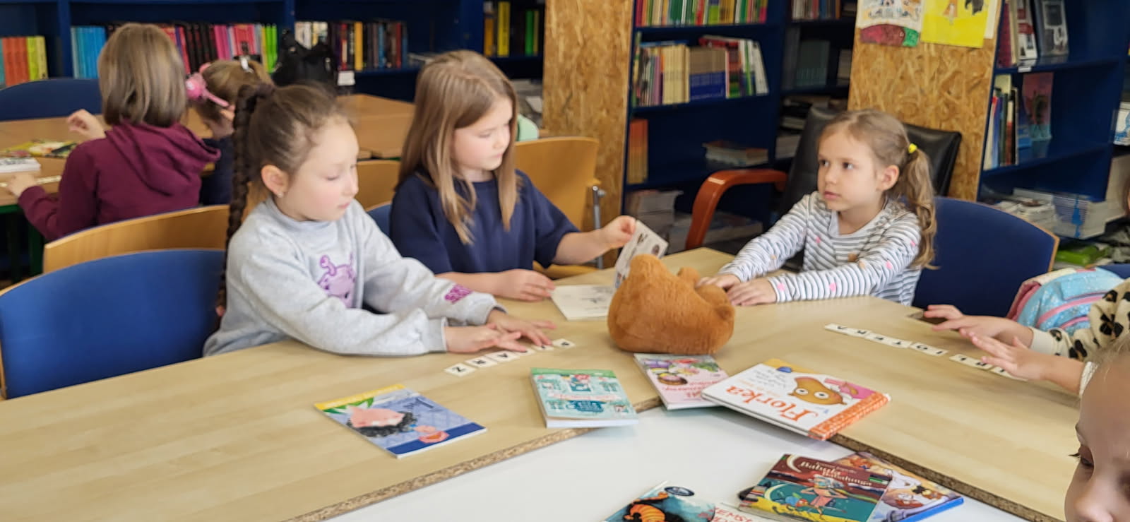 Następnie dzieci odpowiadały na zagadki dotyczące tytułów baśni oraz odgadywały imiona bohaterów książkowych.