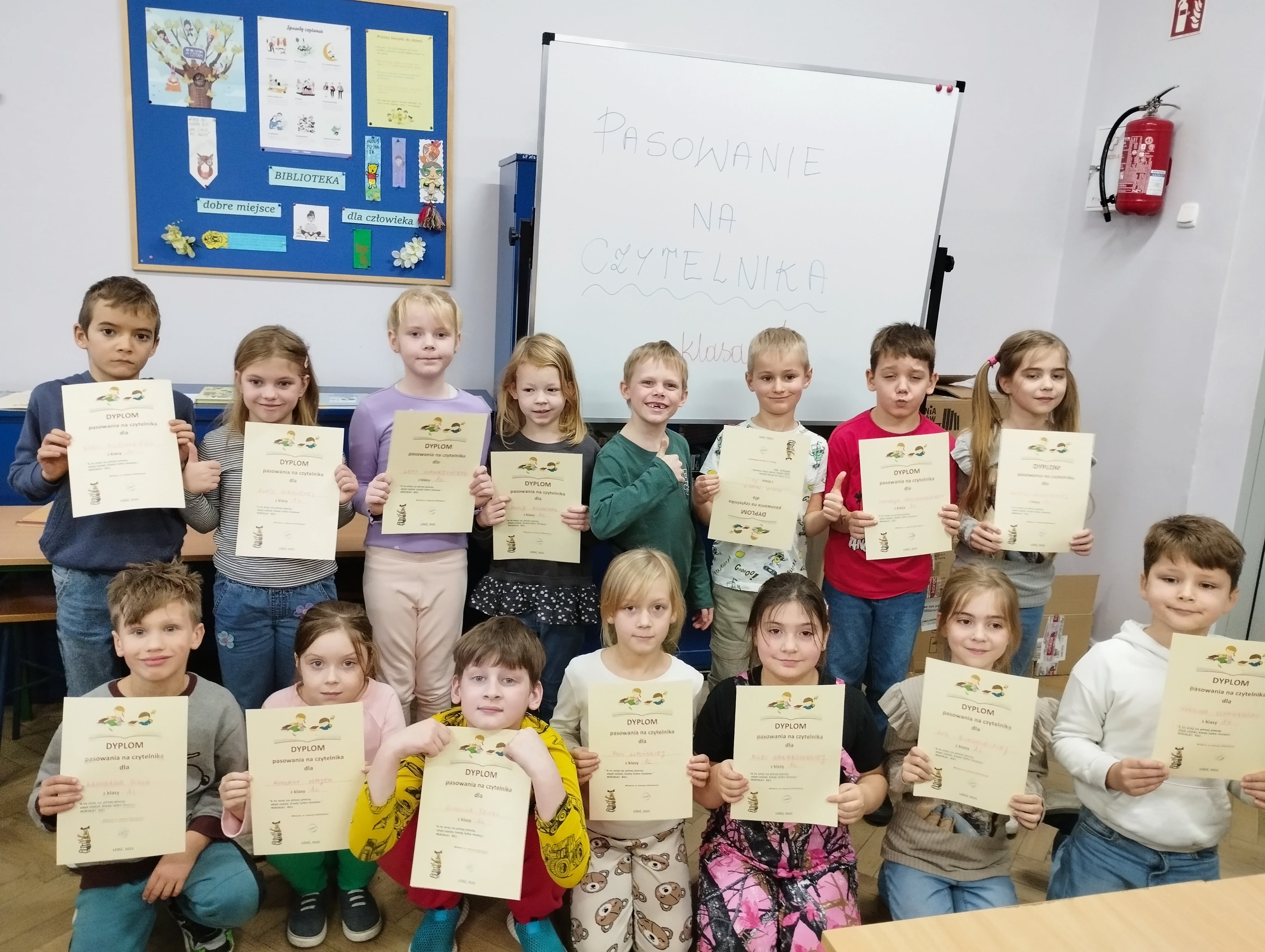 Uczniowie wykazali się doskonałą wiedzą na te tematy i dlatego na koniec każdy z uczestników otrzymał dyplom oraz został uroczyście pasowany na czytelnika.