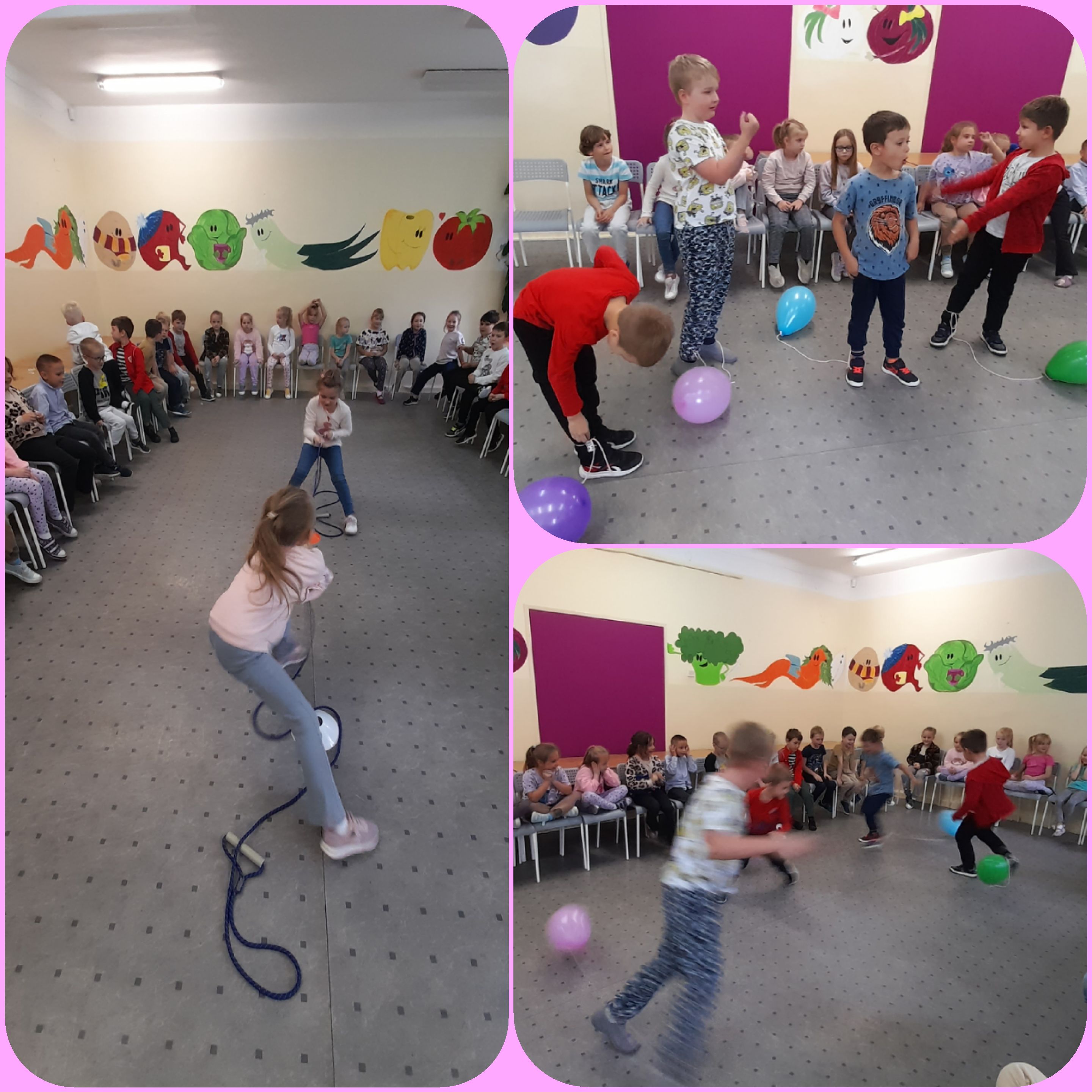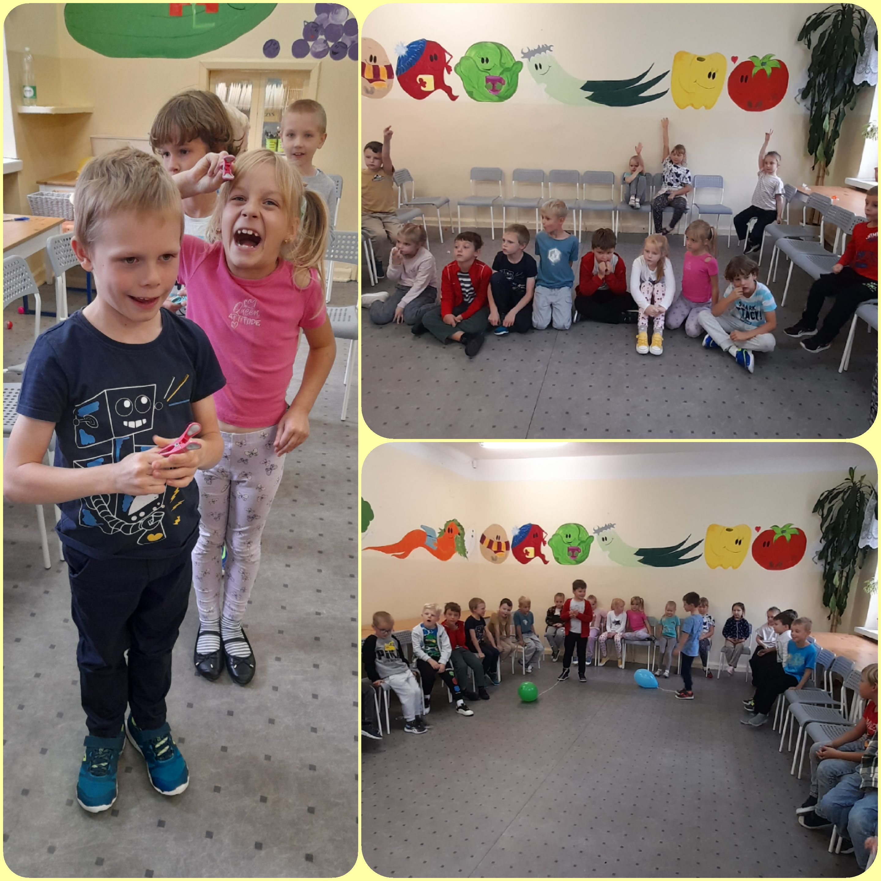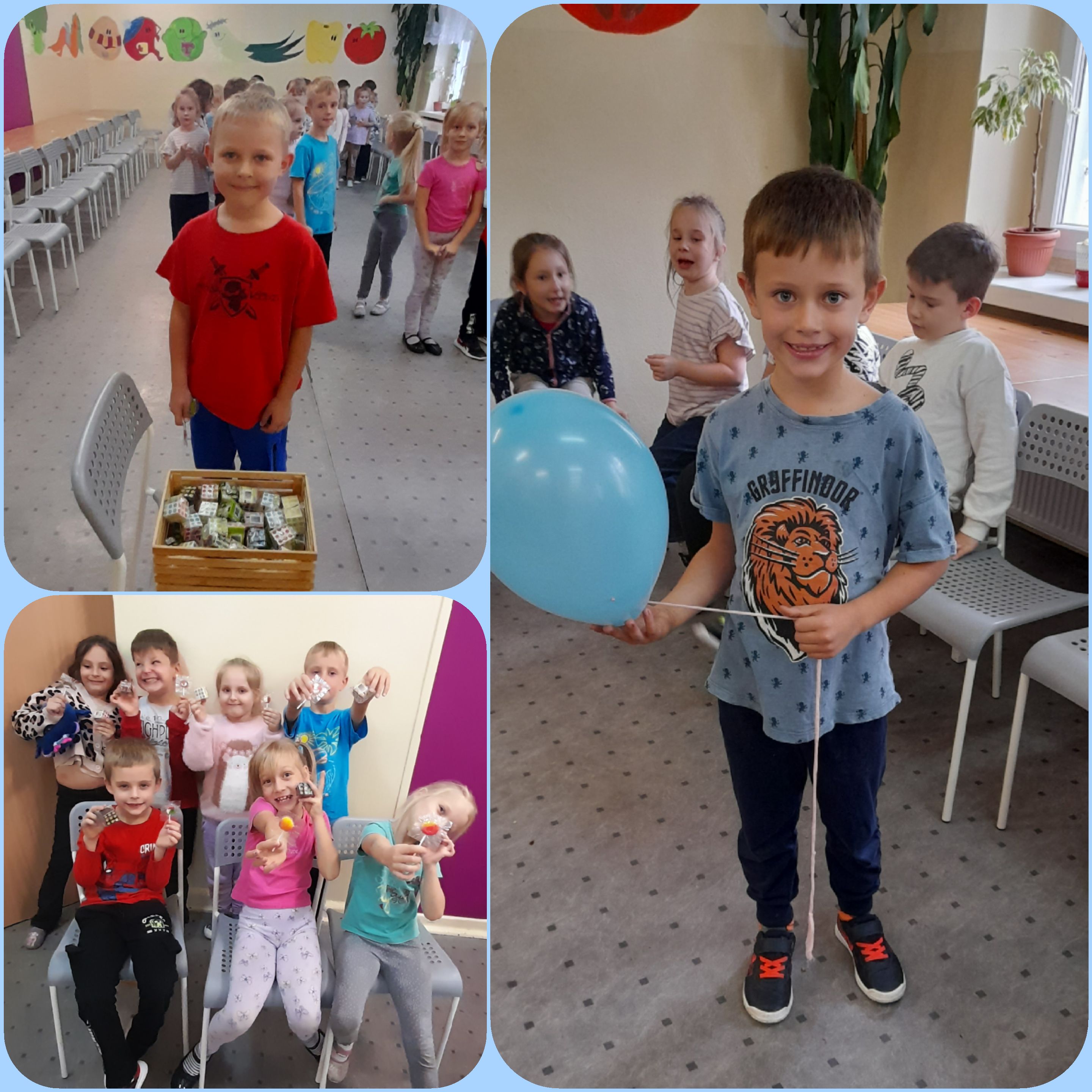 Dzieci miały okazję wziąć udział w różnych zabawach i konkursach. Wykazały się sprawnością ruchową oraz wiedzą na temat zasad funkcjonowania świetlicy. Na zakończenie zabawy każdy przeszedł test smaku poprzez skosztowanie soku z cytryny. Z uśmiechem na twarzy otrzymał tytuł Świetliczaka oraz upominek i słodką przekąskę.