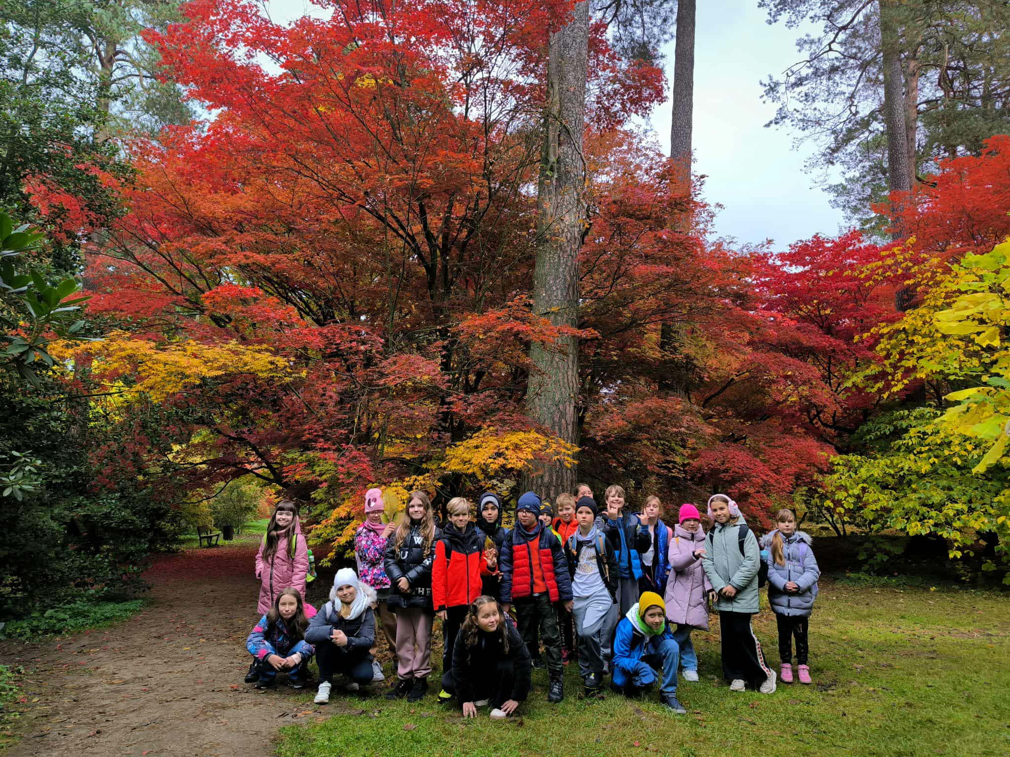 Zwiedzanie rozpoczęliśmy od Muzeum Lasu i Drewna, gdzie zaciekawiły nas różnorodne eksponaty – ptaków, ssaków, owadów, nasion, szyszek i oczywiście plastrów różnych gatunków drzew. Następnie pod okiem przewodnika spacerowaliśmy po Arboretum i Alpinarium. Zachwyciły nas intensywne kolory, a także nietypowe gatunki drzew, które rosną w tym ogrodzie. Miłym podsumowaniem było ognisko i samodzielne pieczenie kiełbasek.