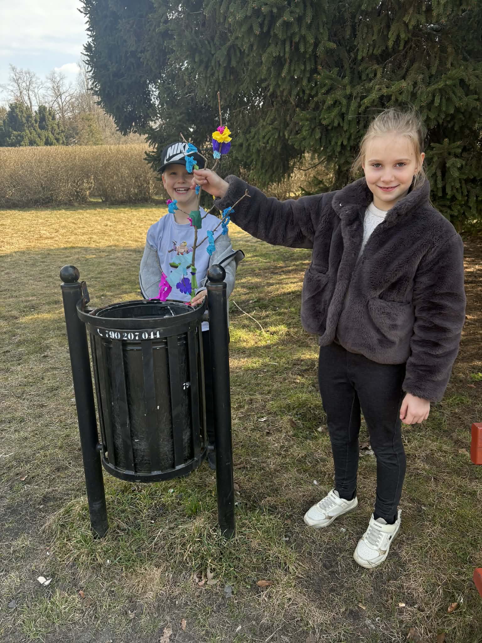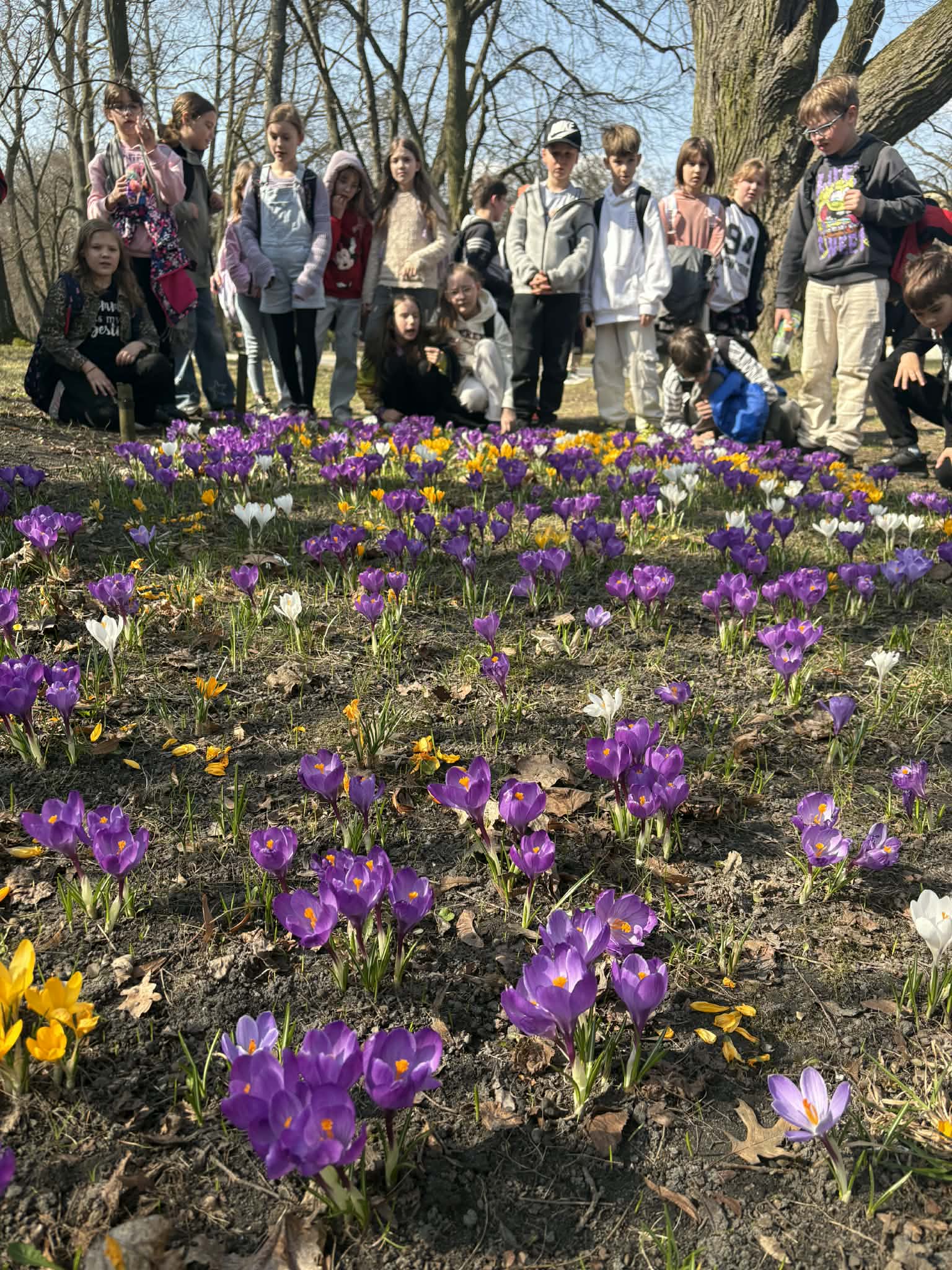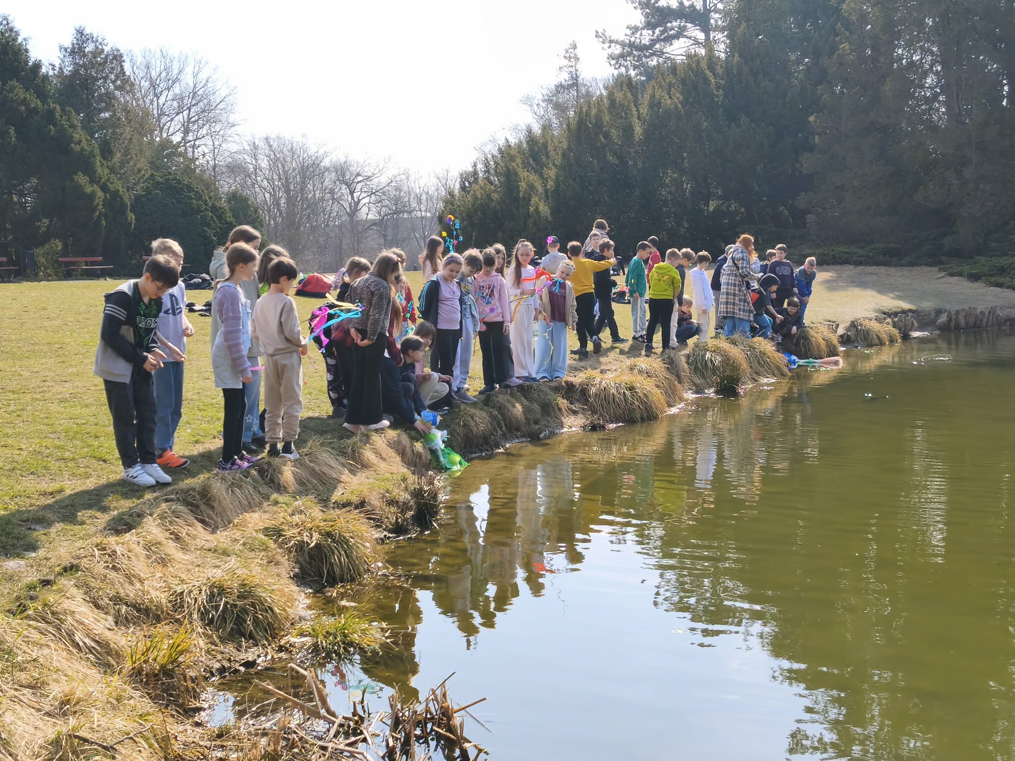 Wyjście było doskonałą okazją do bezpośredniego kontaktu z przyrodą oraz uważnej obserwacji zmian zachodzących wraz z nadejściem wiosny. Podczas zajęć uczniowie pracowali w grupach, podejmując się różnorodnych zadań. Poszukiwali pierwszych oznak wiosny, prowadzili obserwacje, zapisywali swoje spostrzeżenia oraz wyciągali wnioski. Nie zabrakło również elementów współpracy i wzajemnego wsparcia, które sprzyjały integracji zespołów klasowych. Wyjście zbiegło się z obchodami pierwszego dnia wiosny, dlatego uczniowie w symboliczny sposób pożegnali zimę, topiąc Marzannę. Dodatkowo wspólnie udekorowali park wiosennymi gaikami, wprowadzając radosny, kolorowy akcent w otaczającą przestrzeń. Była to nie tylko świetna forma integracji i wspólnego świętowania nadejścia wiosny, ale przede wszystkim wartościowa lekcja przyrody w praktyce, która pozwoliła uczniom uczyć się poprzez doświadczenie i aktywne działanie.