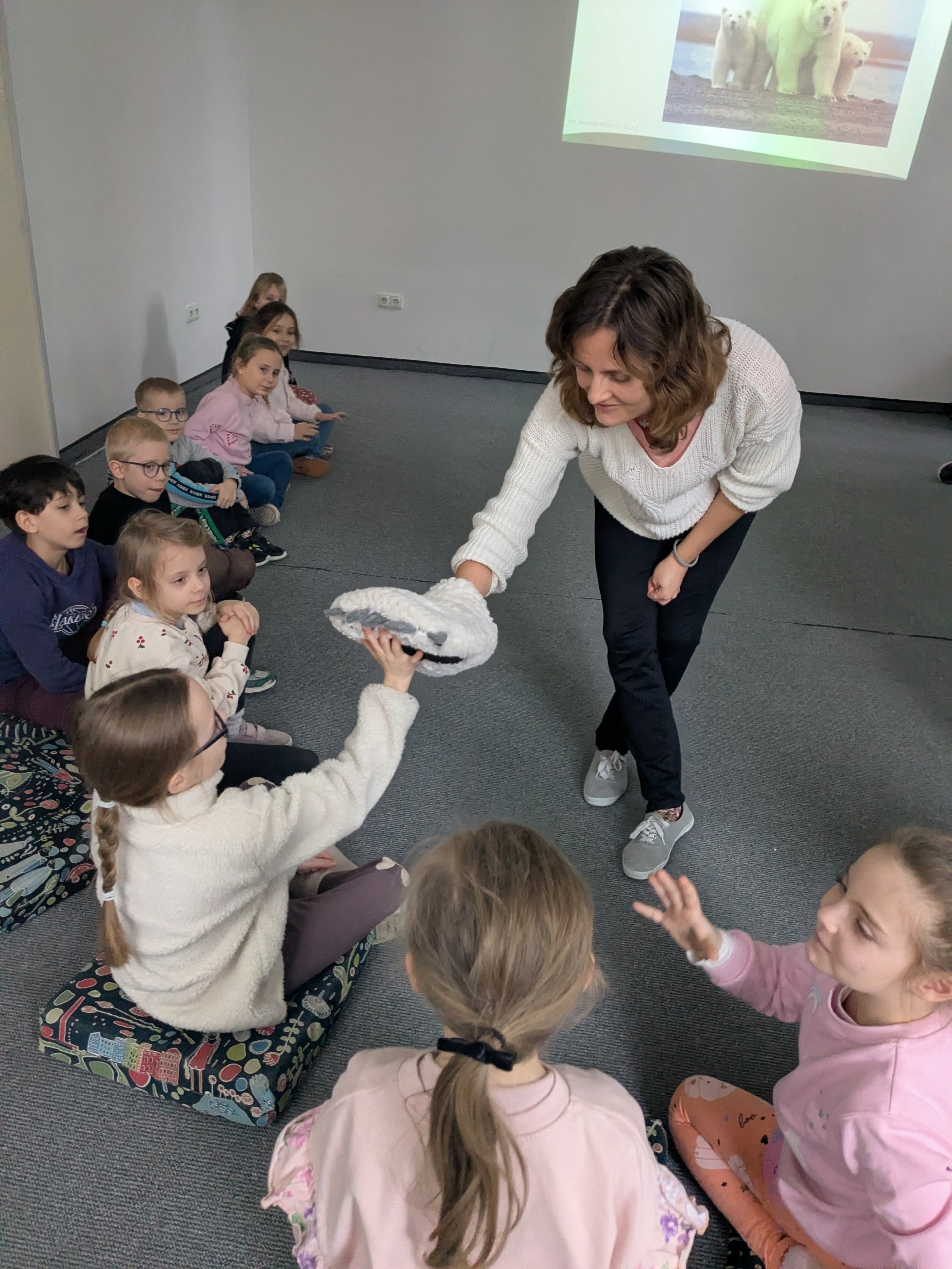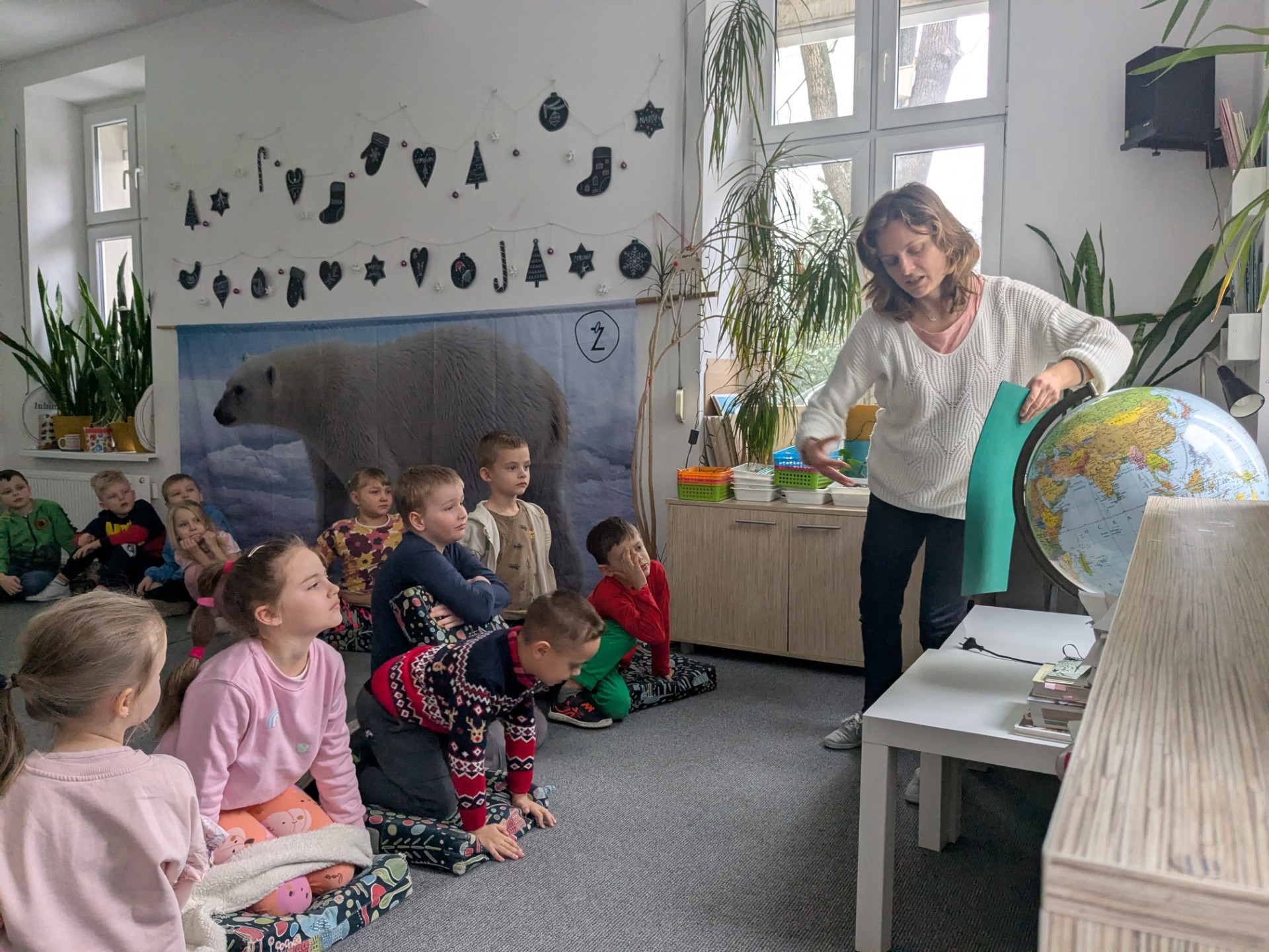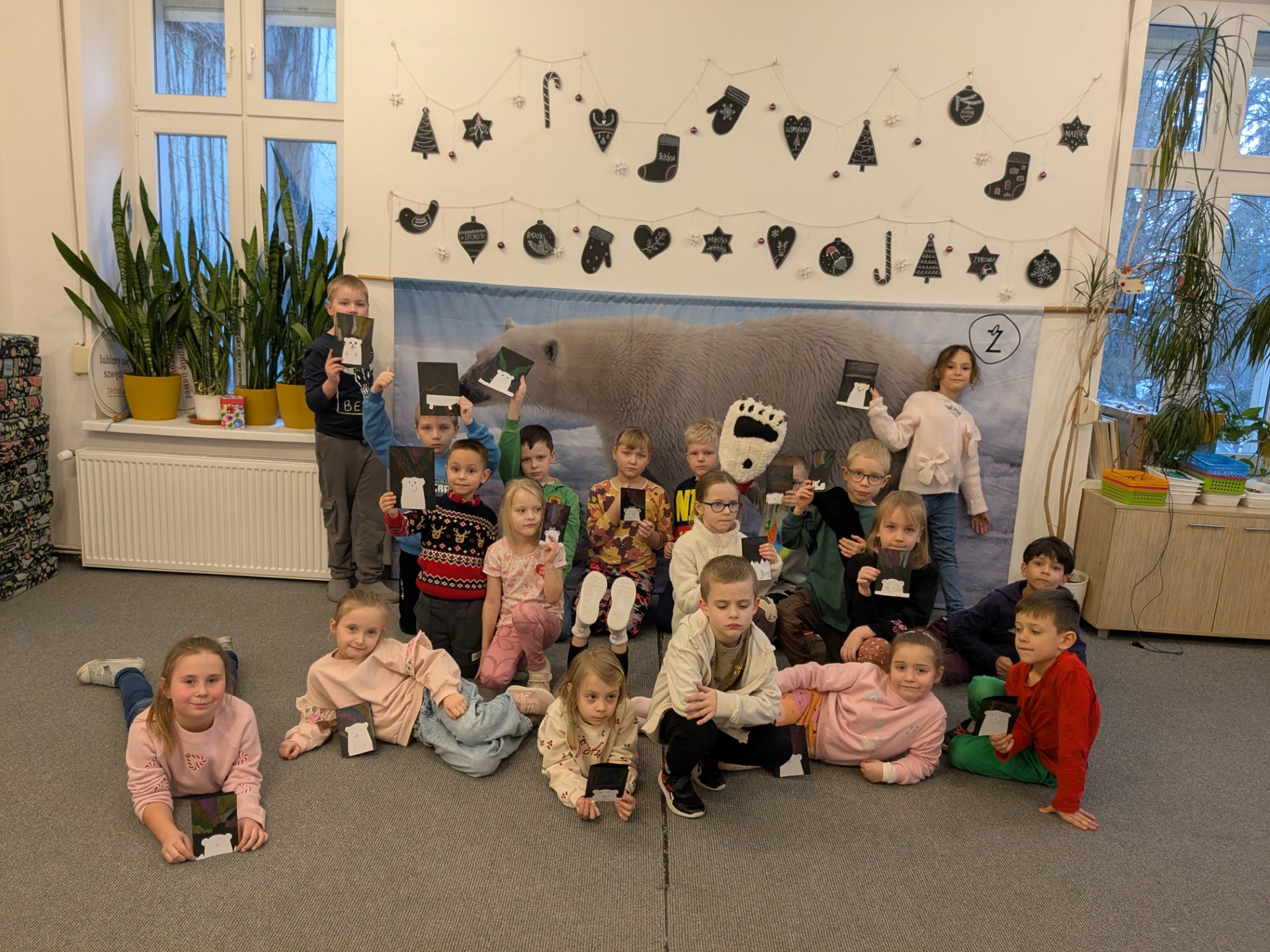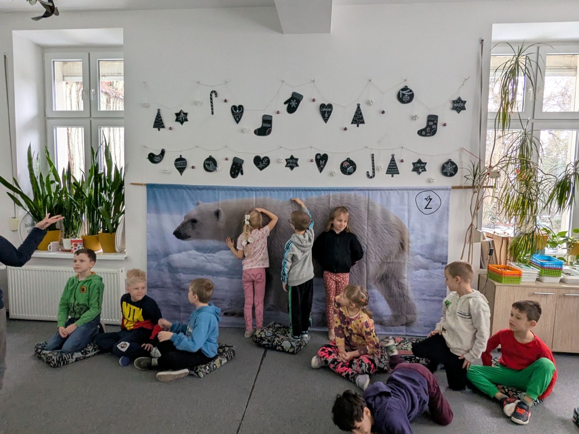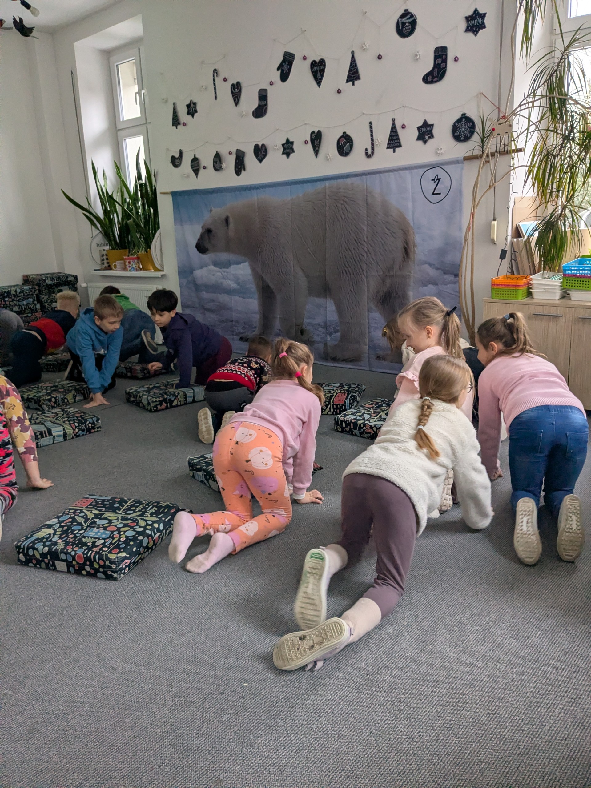 Dzieci poznały ich zwyczaje, upodobania, a także dowiedziały się co jest dla niedźwiedzi dużym zagrożeniem. Więc wszyscy ręce na pokład ! Dbajmy o naszą planetę i chrońmy ją, aby kolejne pokolenia mogły zobaczyć niedźwiedzie w ich naturalnym środowisku. Na zakończenie zajęć wykonaliśmy piękne kartki, gdzie głównym bohaterem był niedźwiedź. Zajęcia były bardzo ciekawe.