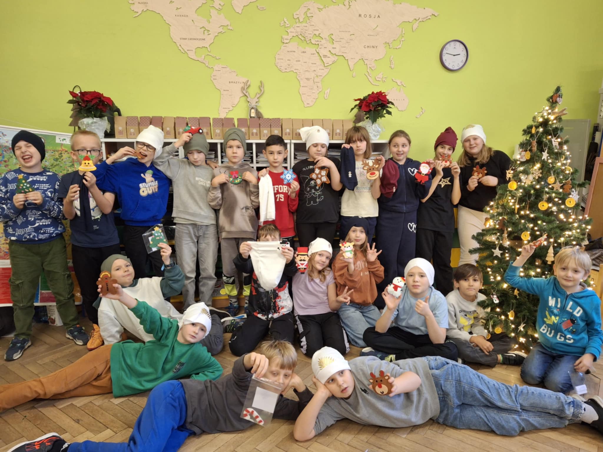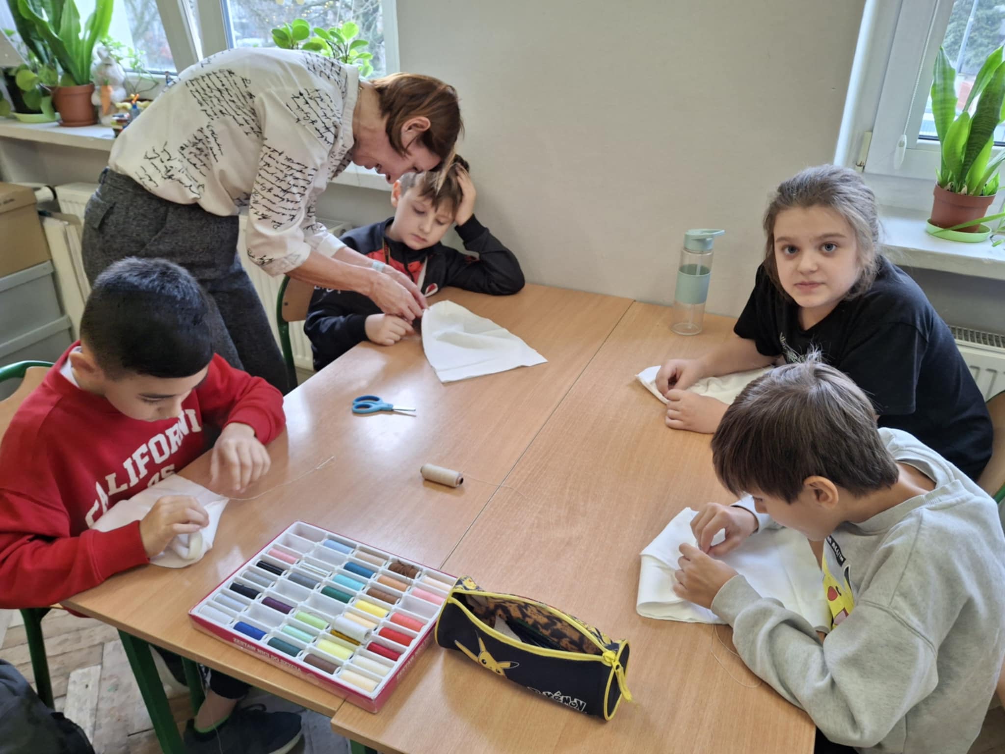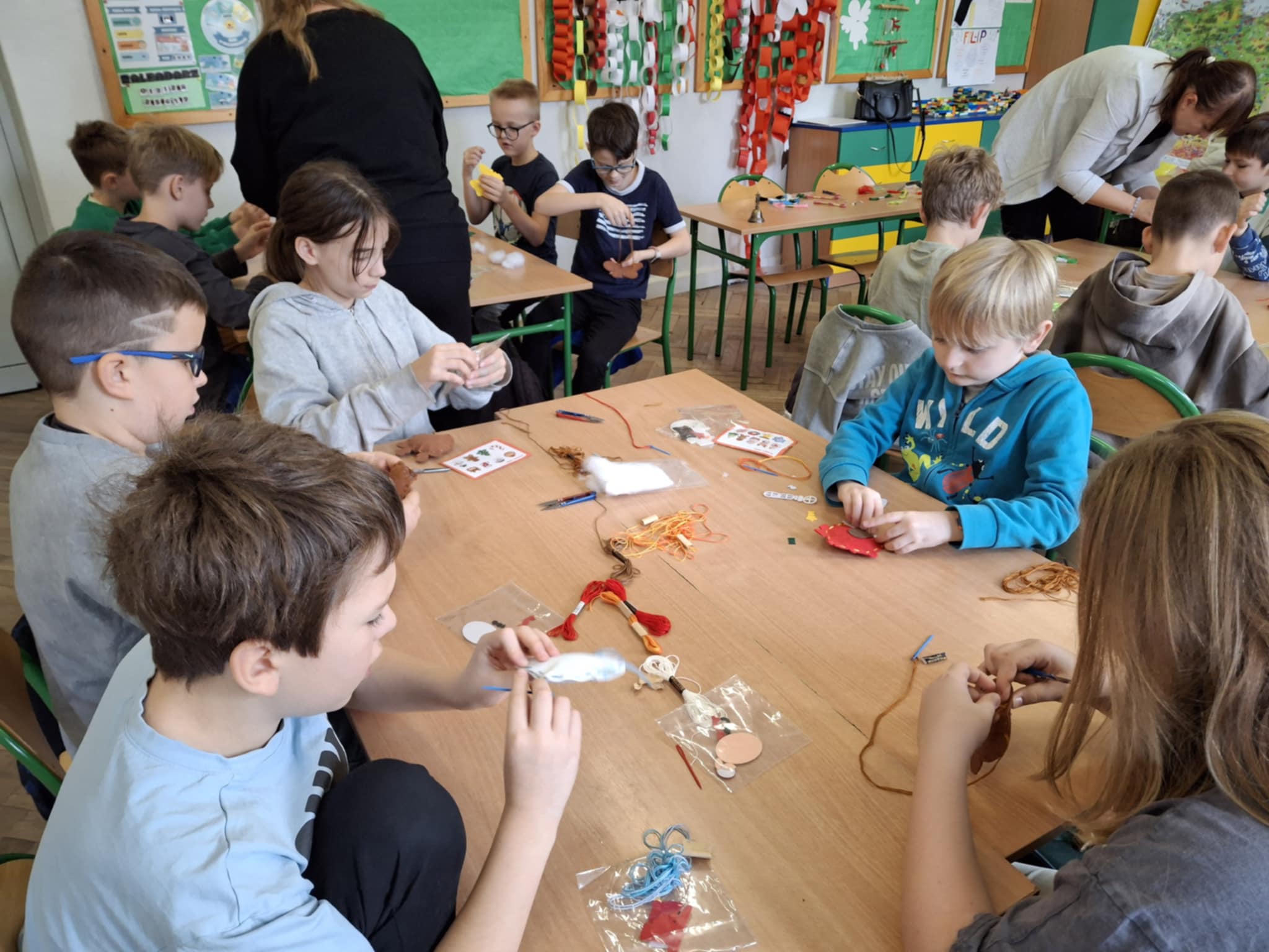 Rozpoczęliśmy od filcowych zestawów ozdób świątecznych, by powoli oswajać się z igłą. przyjemność jednak przyniosło nam własnoręczne uszycie swoich czapek. To była wyjątkowa lekcja, dzięki której inaczej będziemy patrzeć już na ubrania w sklepach.