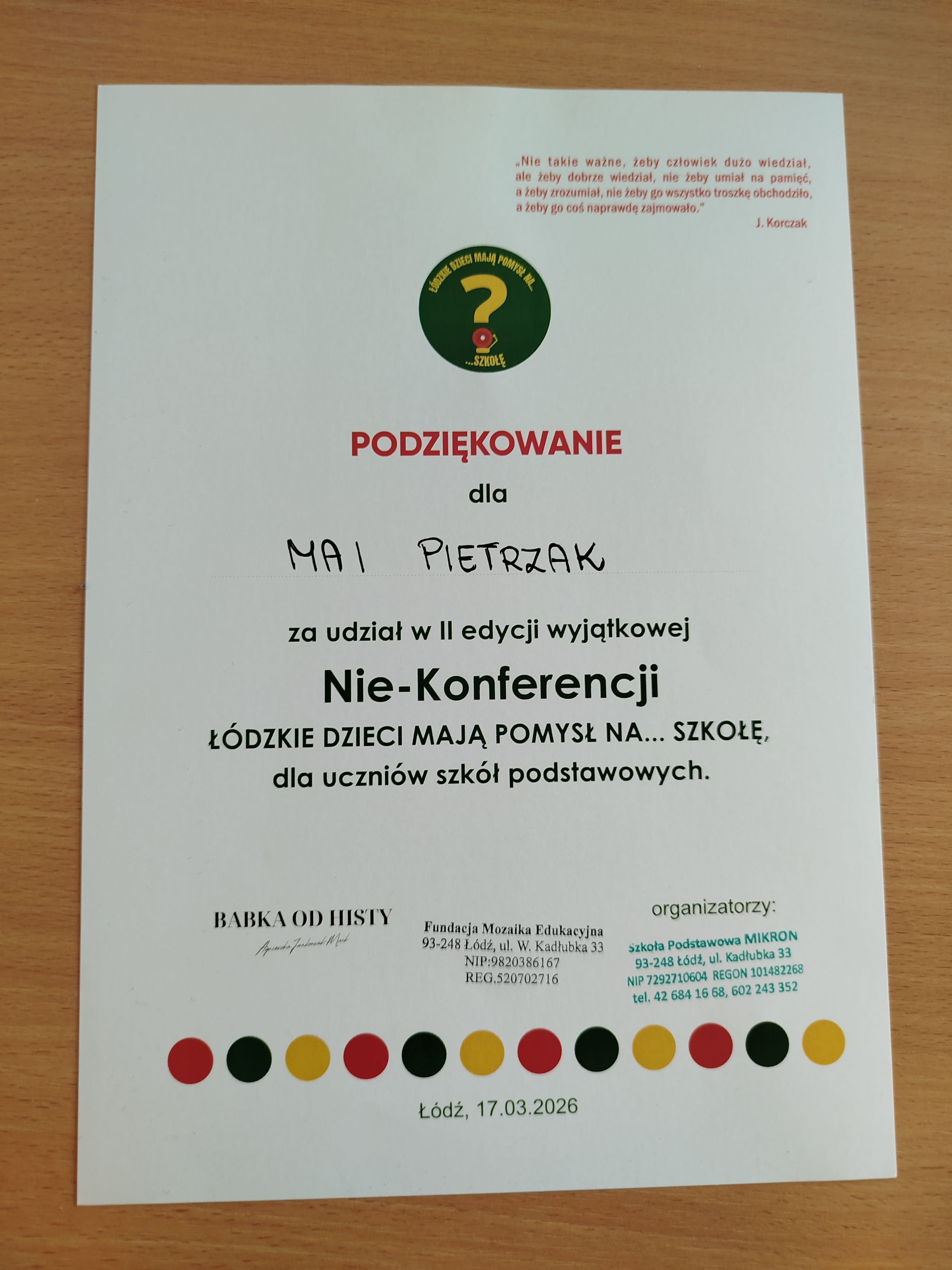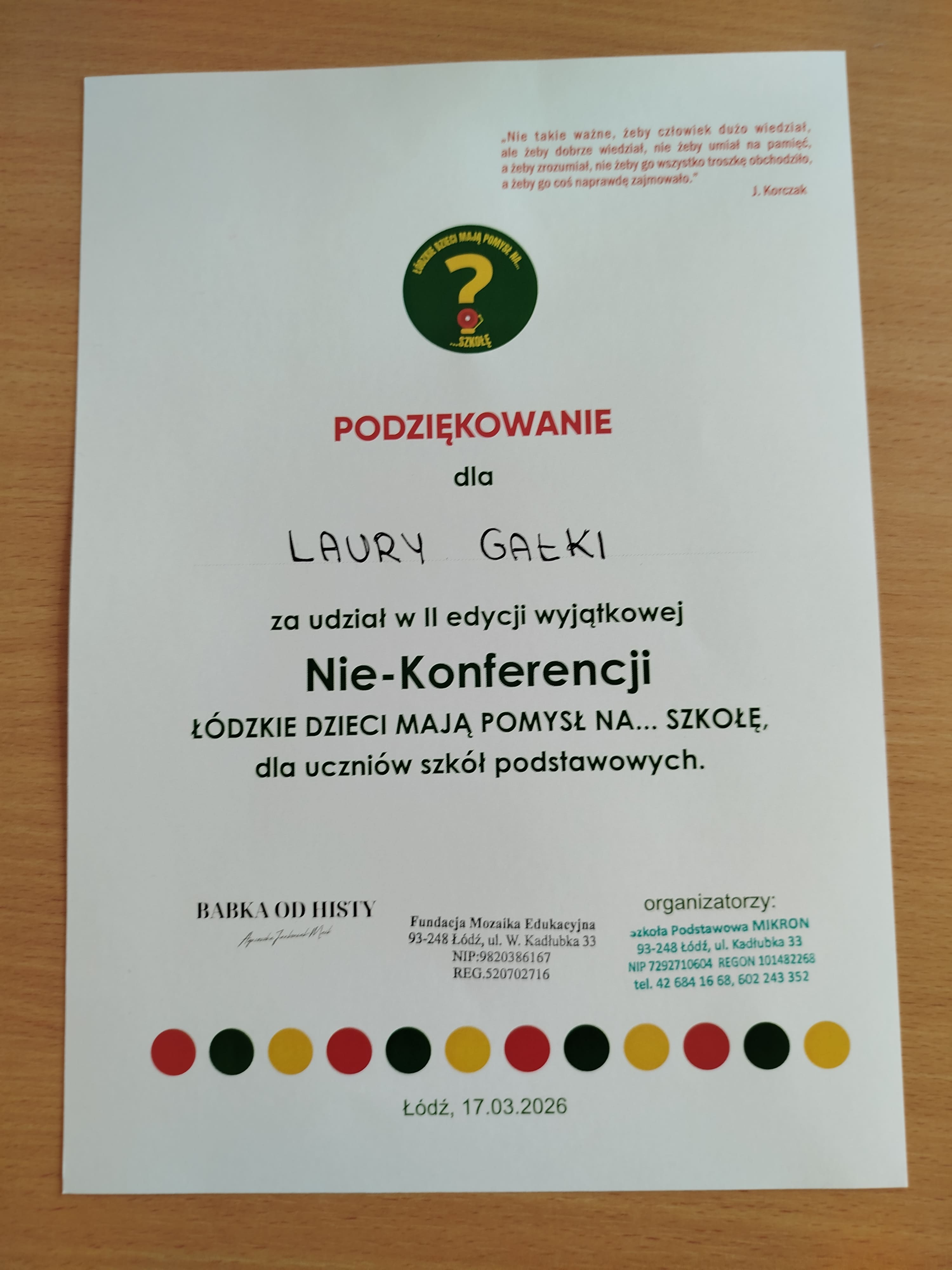 Udział w konferencji "Łódzkie dzieci mają pomysł na szkołę"