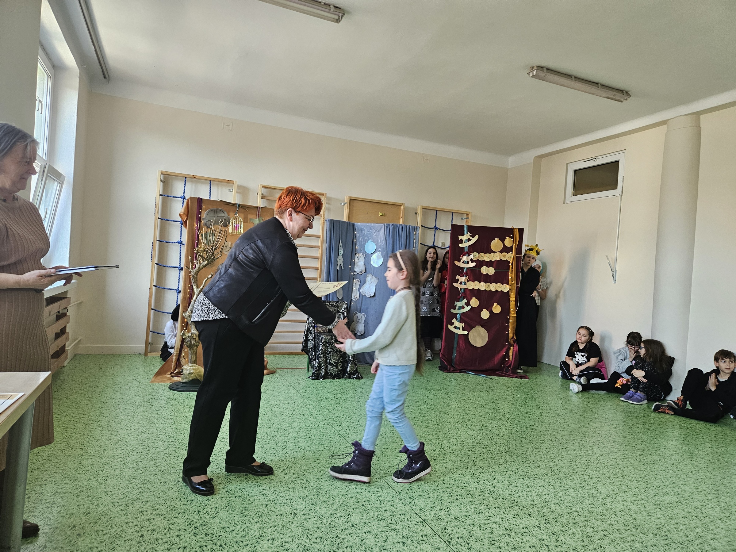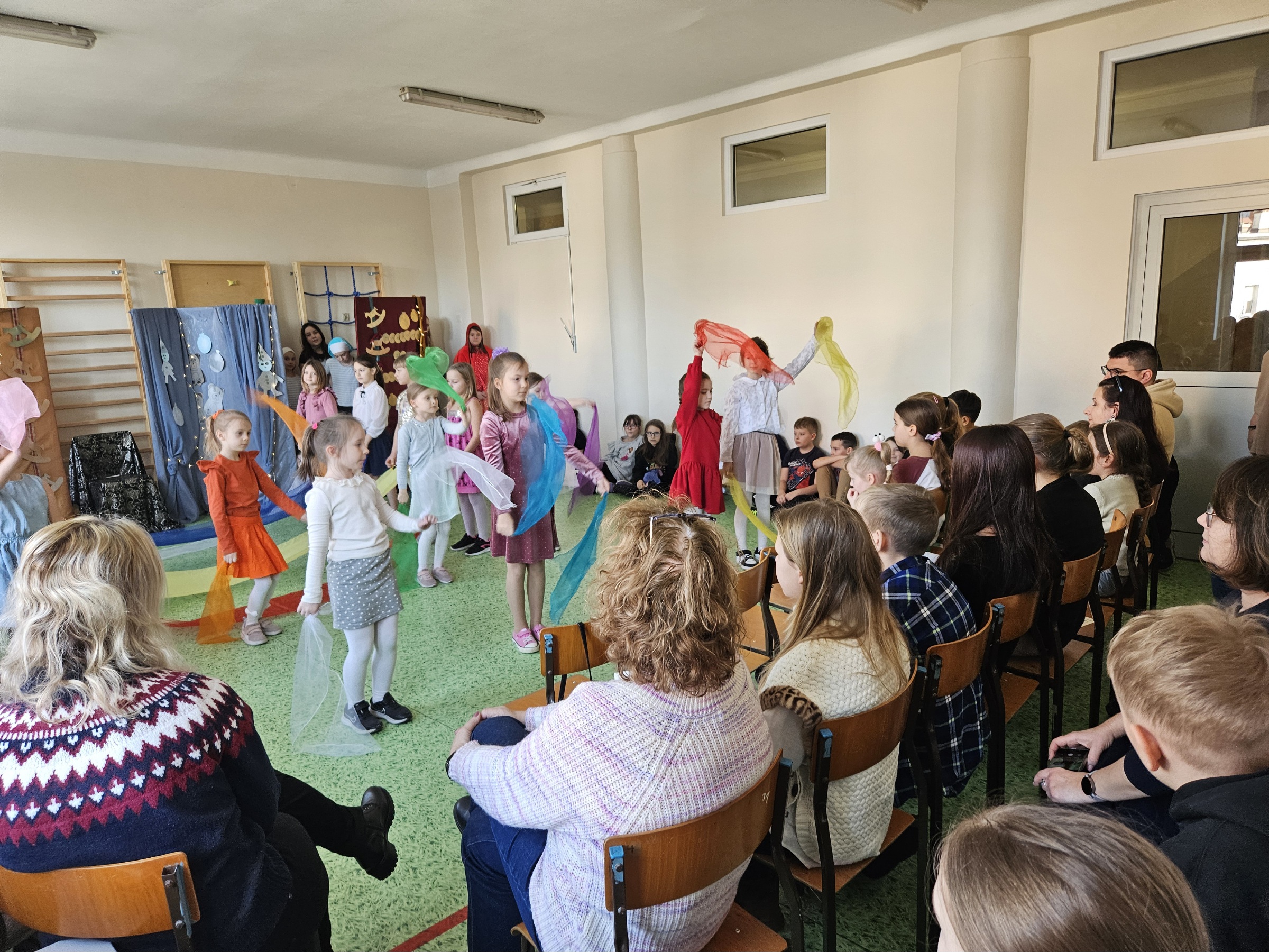 Uroczystość uświetniły występy szkolnego koła teatralnego, tanecznego i klasy 3c, która odśpiewała hymn Zabawki ze skrawka.