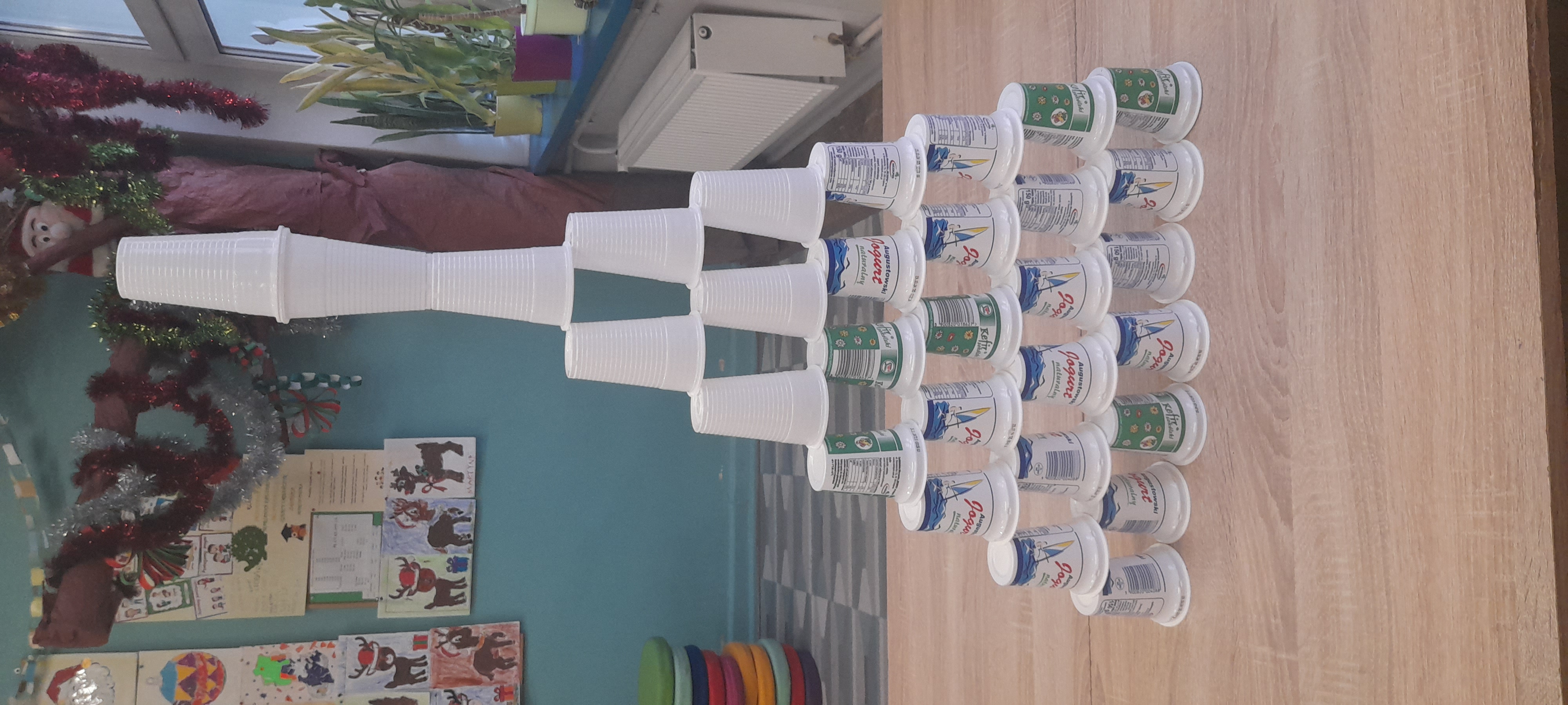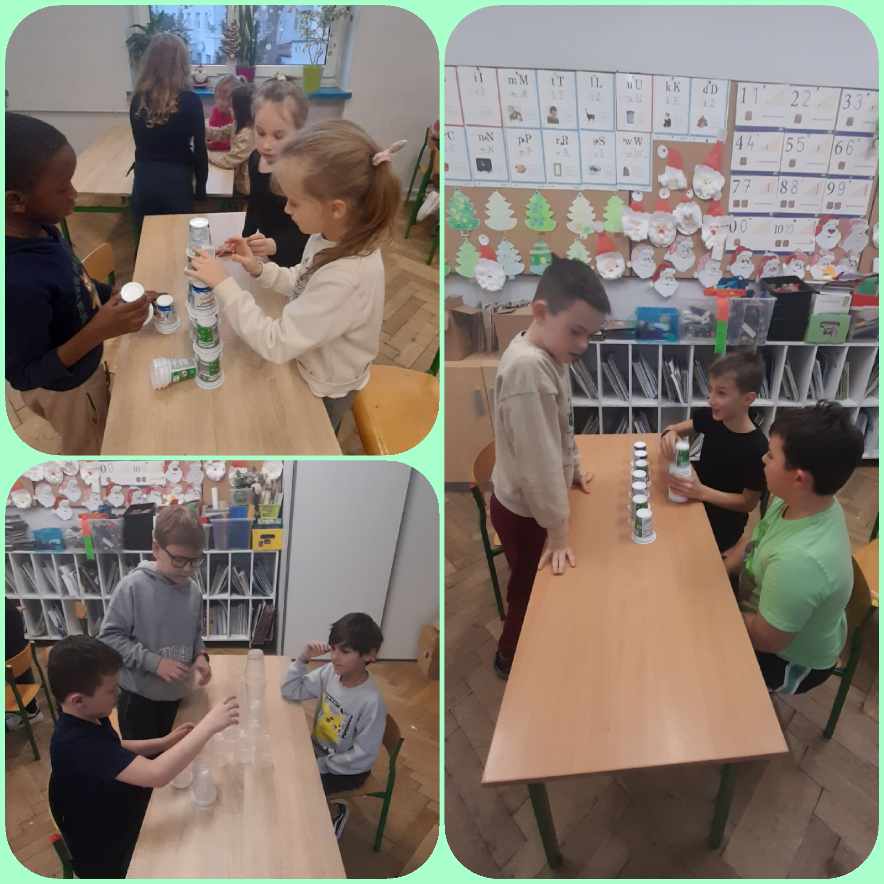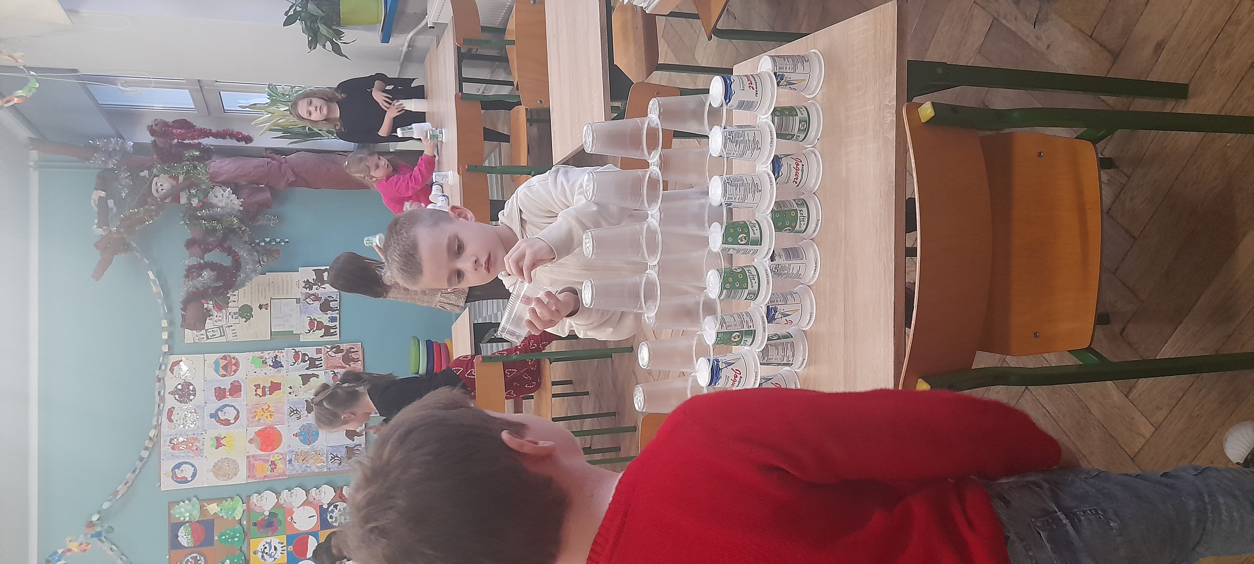 Dzieci zostały podzielone na trzyosobowe drużyny. Zadaniem każdej z drużyn było zbudowanie jak najwyższej wieży z kubków. Każda drużyna miała do dyspozycji taką samą ilość kubków oraz możliwość dobierania ich w trakcie zabawa. Dzieci miały jedną możliwość powtórzenia budowli. Drużyna zwycięzców otrzymała nagrodę, a pozostali uczestnicy nagrodę pocieszenia.