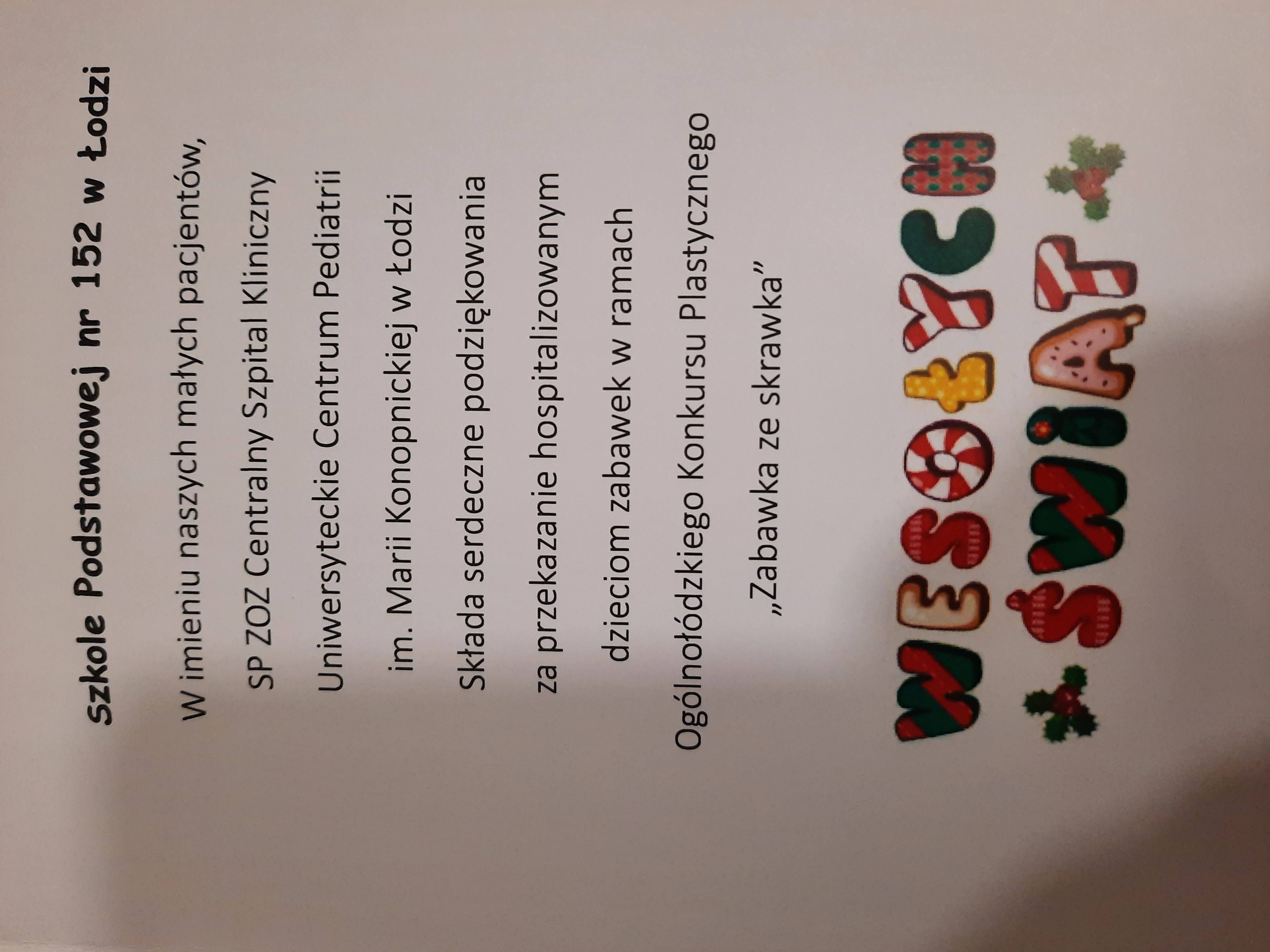 Zapraszamy na uroczyste wręczenie nagród i podziękowań, które odbędzie się 21 stycznia 2026 r. o godzinie 11.00 w Szkole Podstawowej nr 152 im Elizy Orzeszkowej w Łodzi przy ul 28 Pułku Strzelców Kaniowskich 52/54.