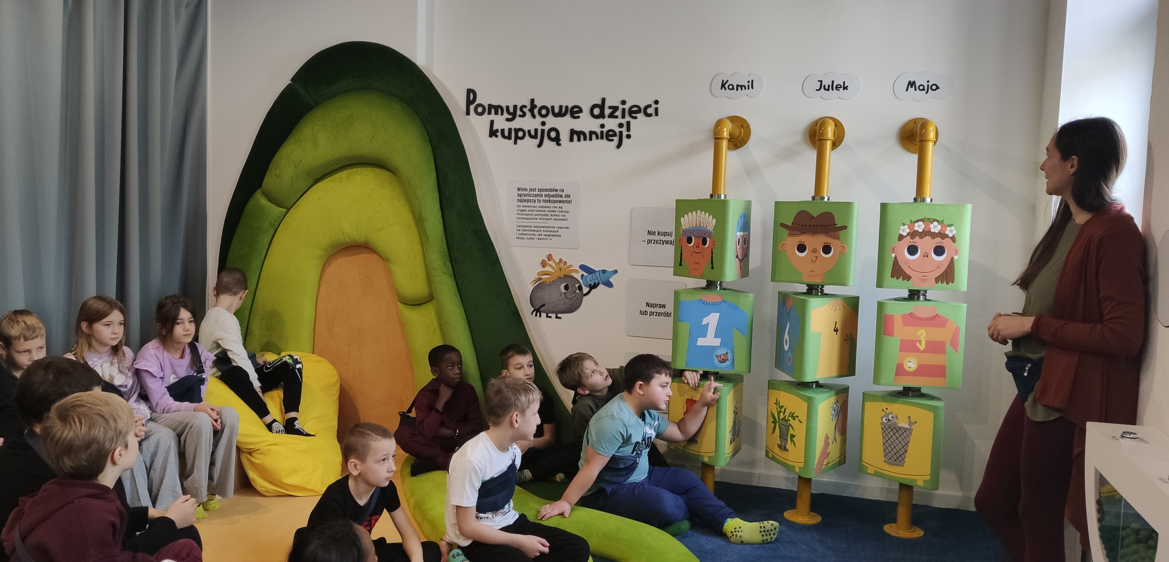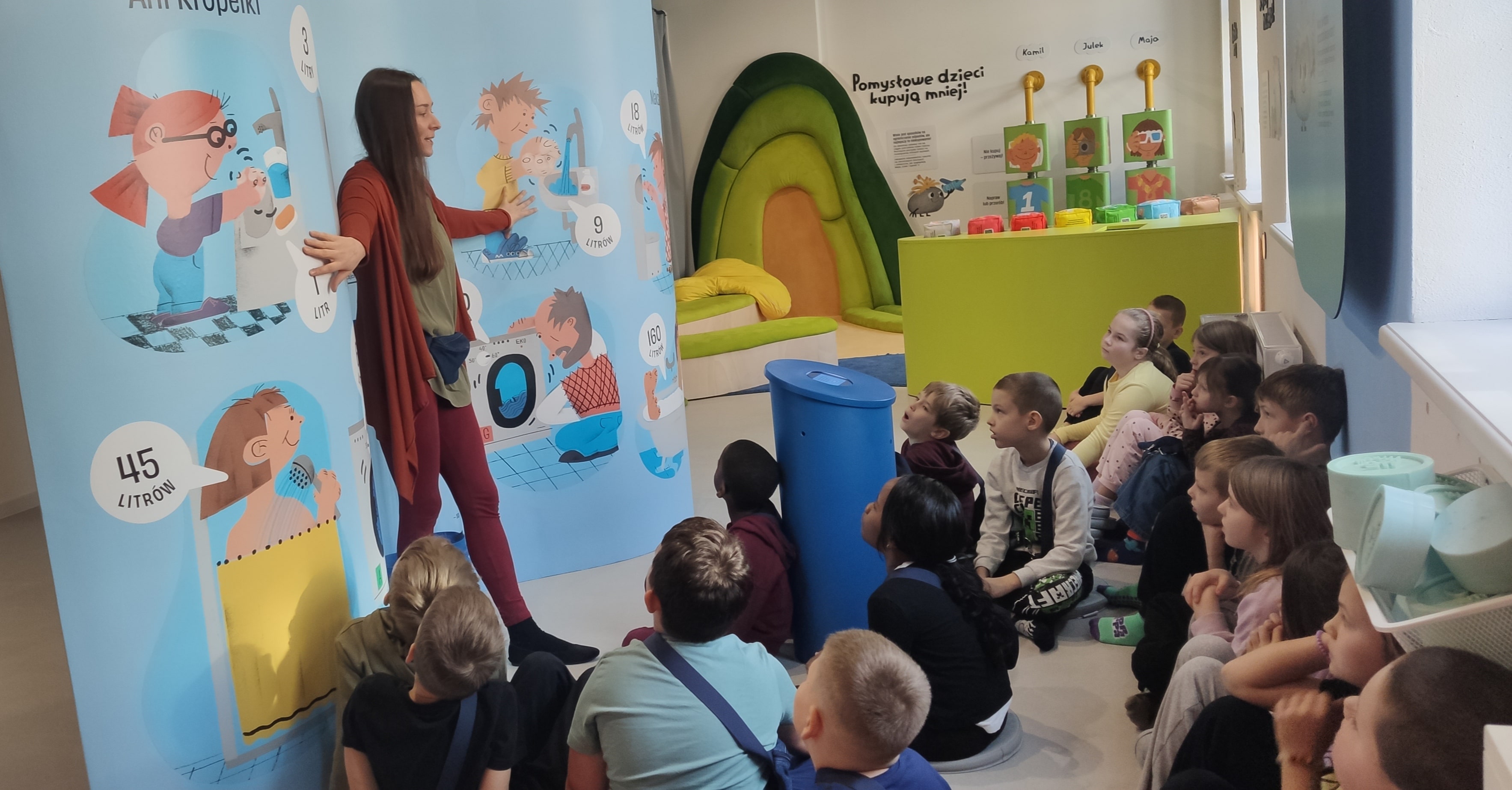 Podczas zajęć dzieci zbierały punkty za rozwiązanie zadań z poszczególnych obszarów: oszczędzanie wody, oszczędzanie energii elektrycznej, segregacja śmieci, recykling. Była to ciekawa lekcja ekologii.